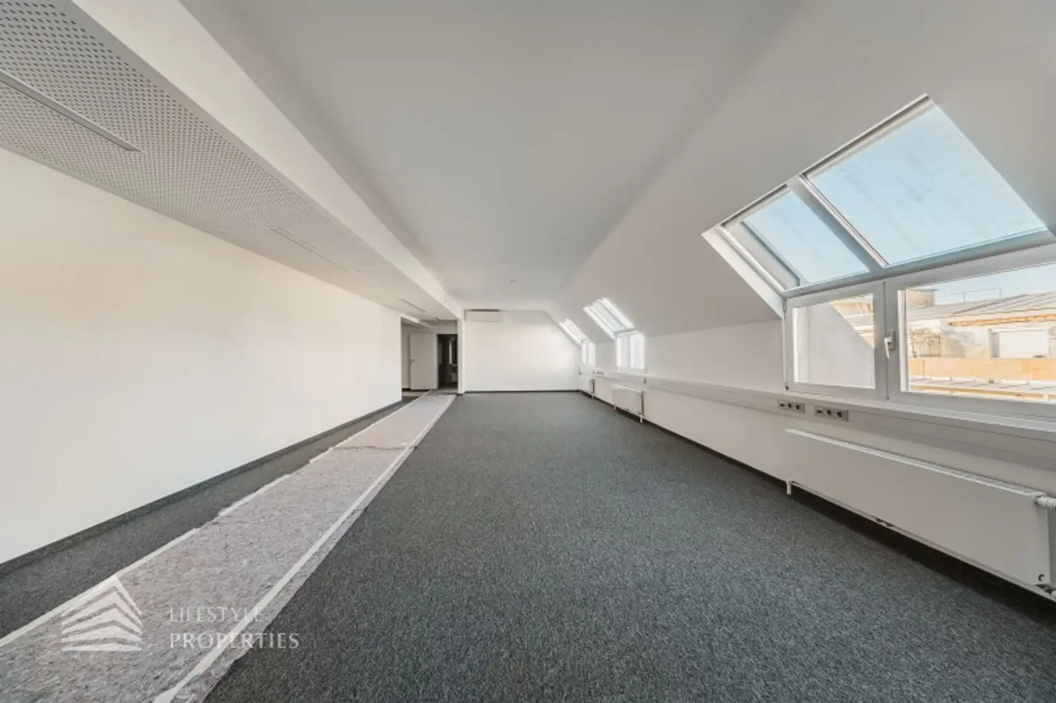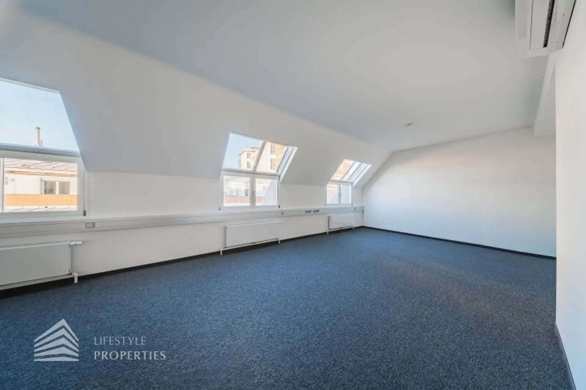Die gesamten Räume sind klimatisiert. Bei gewünschten Raumaufteilungen durch Glaswände und Glastüren erhöht sich die monatliche Bruttomiete um 525.- Euro.