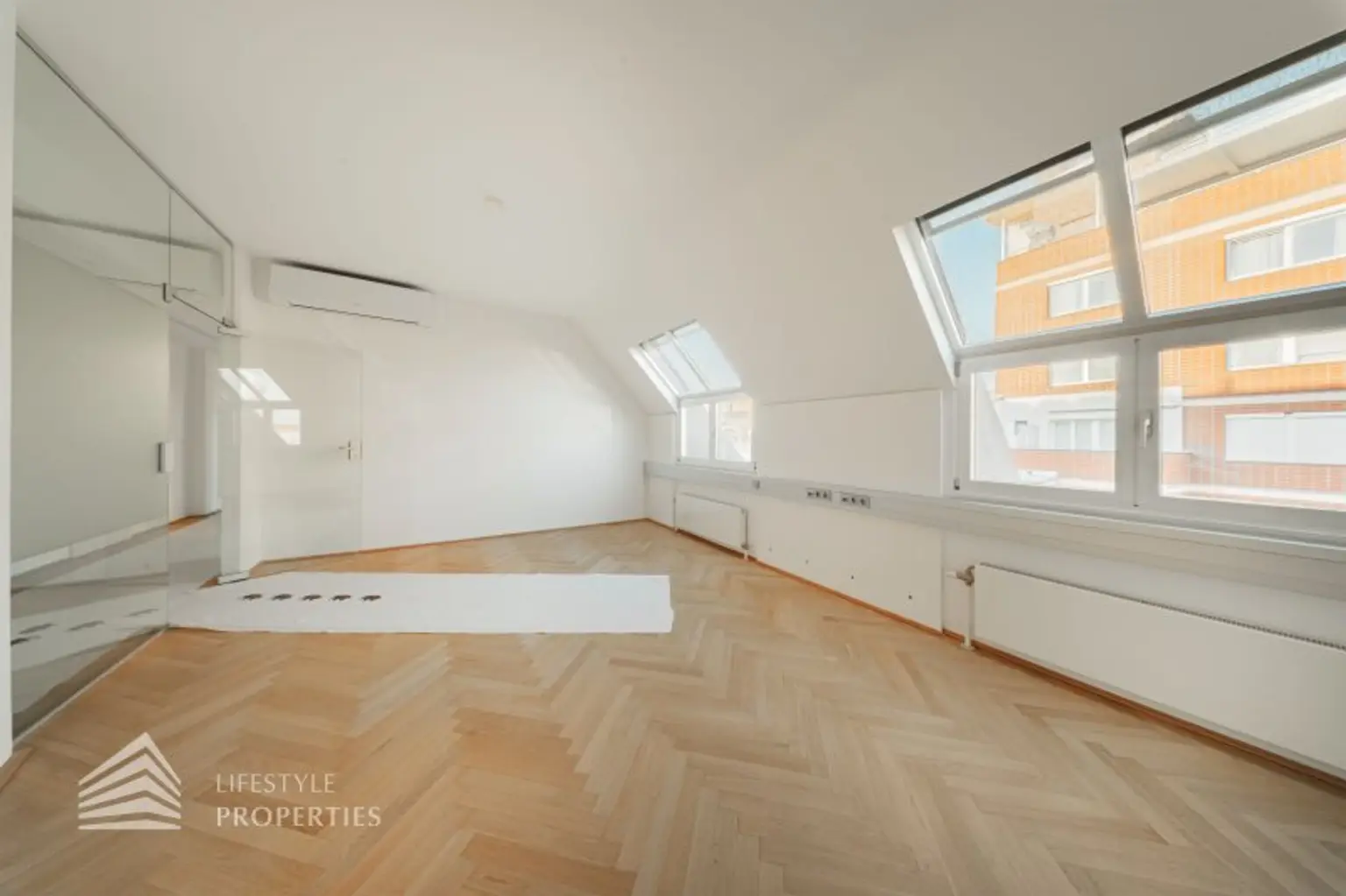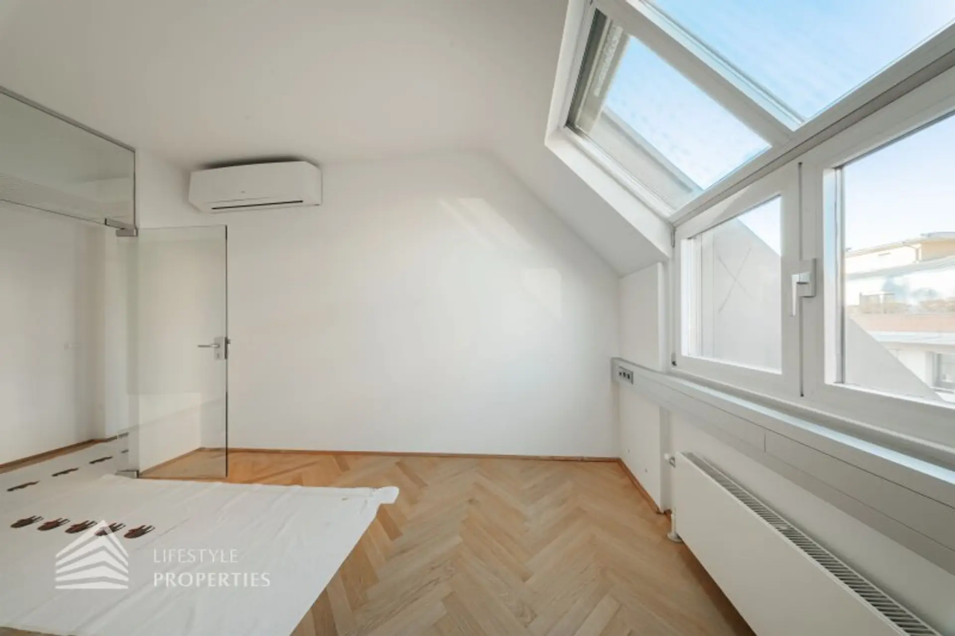 Die gesamten Räume sind klimatisiert. Bei gewünschten Raumaufteilungen durch Glaswände und Glastüren erhöht sich die monatliche Bruttomiete um 551,84.- Euro.