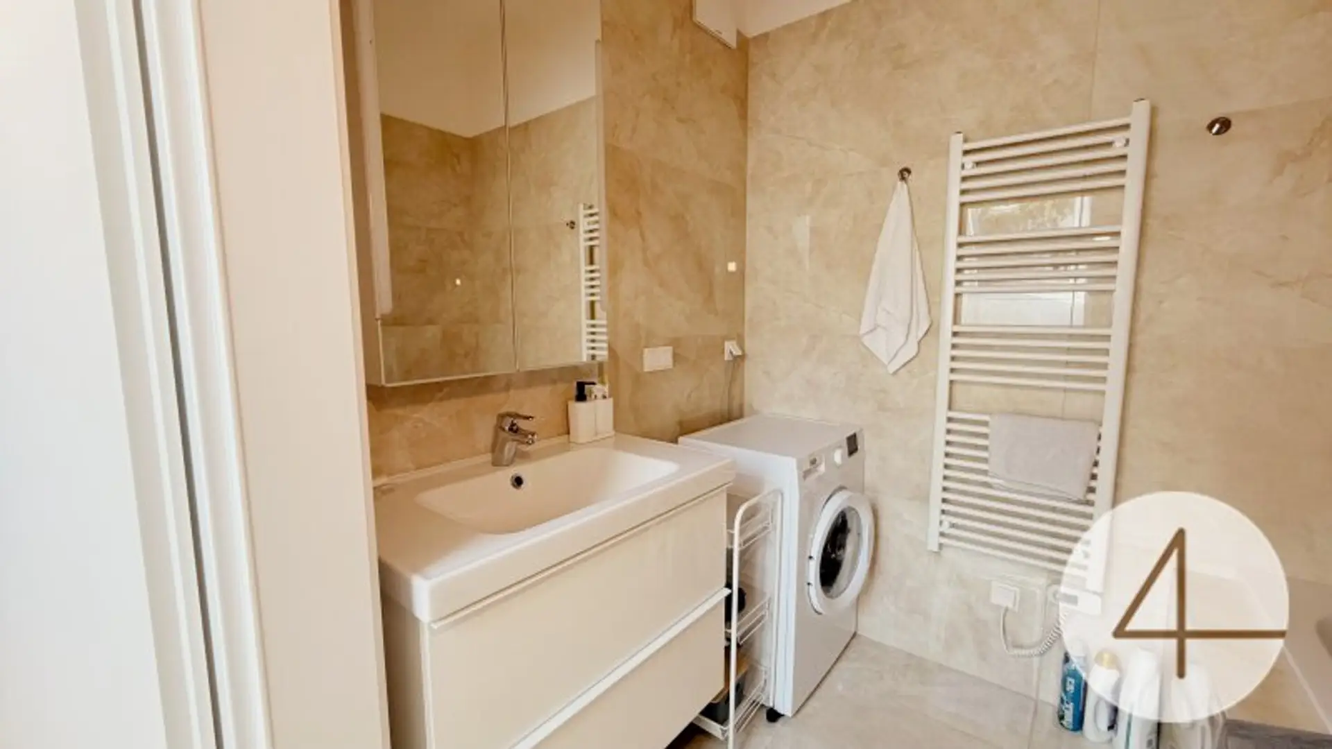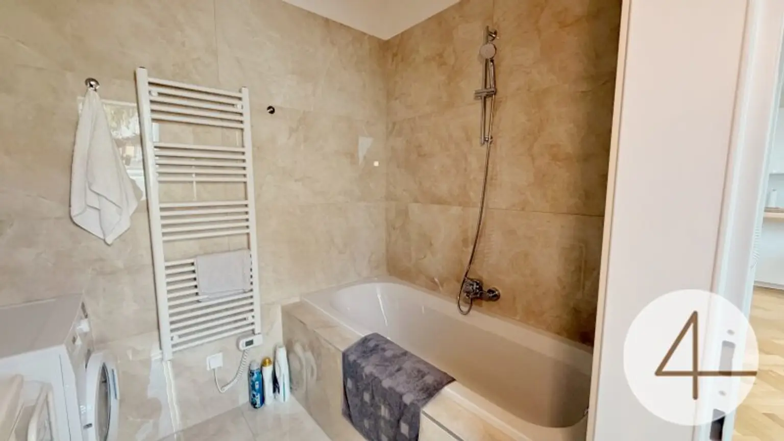 * Badezimmer mit Badewanne, Handwaschbecken und Waschmaschinenanschluss 4,17m2