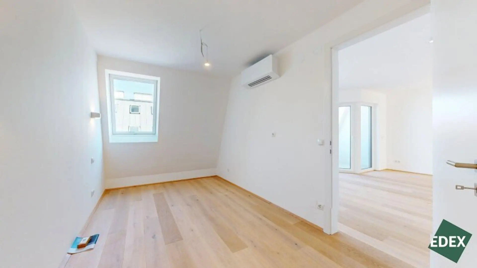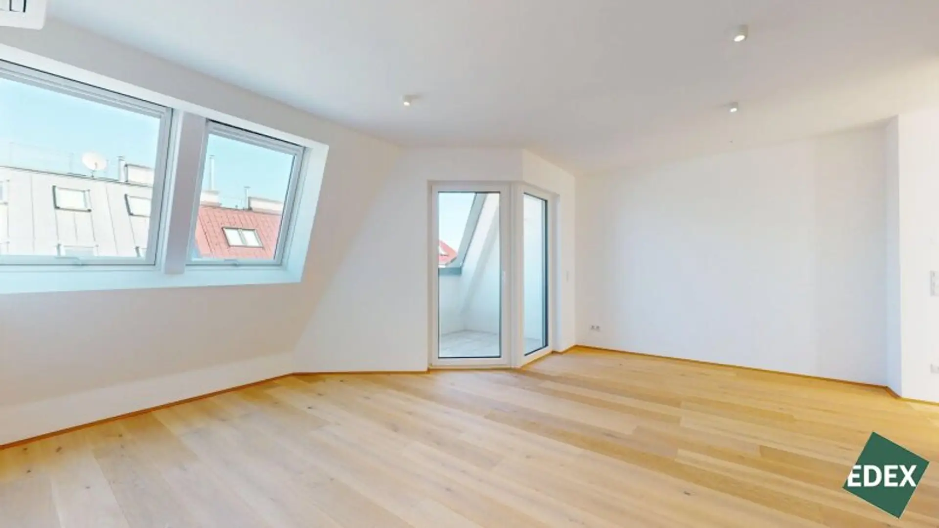 Die traumhafte, ca. 63 m² große, 2-Zimmer-Wohnung befindet sich im neu errichteten Dachgeschoss (5. Liftstock) einer gepflegten Liegenschaft in optimaler Lage des 18. Bezirks und wird voraussichtlich Ende Q1 - 2024 fertiggestellt. Sie besteht aus einem Vorraum, einer großzügigen und lichtdurfluteten Wohnküche mit Zugang zu einer ca. 12,26 m² großen Terrasse, welche in den ruhigen und grünen Innenhof ausgerichtet ist, und einer ca. 4,14 m² großen Loggia. Weiters verfügt die Wohnung über ein Schlafzimmer mit einem angrenzenden Badezimmer mit Dusche und Waschmaschinenanschluss sowie einer separaten Toilette. Laut dem Einrichtungsplan wird die Küche vorgerichtet. Somit können Sie sich Ihre neue Küche ganz nach Ihren persönlichen Vorstellungen gestalten und Ihren Ideen freien Lauf lassen. Die Wohnung verfügt über eine Fußbodenheizung und eine Klimaanlage. Aufgrund der vorhandenen Luftwärmepumpe kann die Wohnung kosteneffizient und am neuestem Stand der Technik geheizt werden.