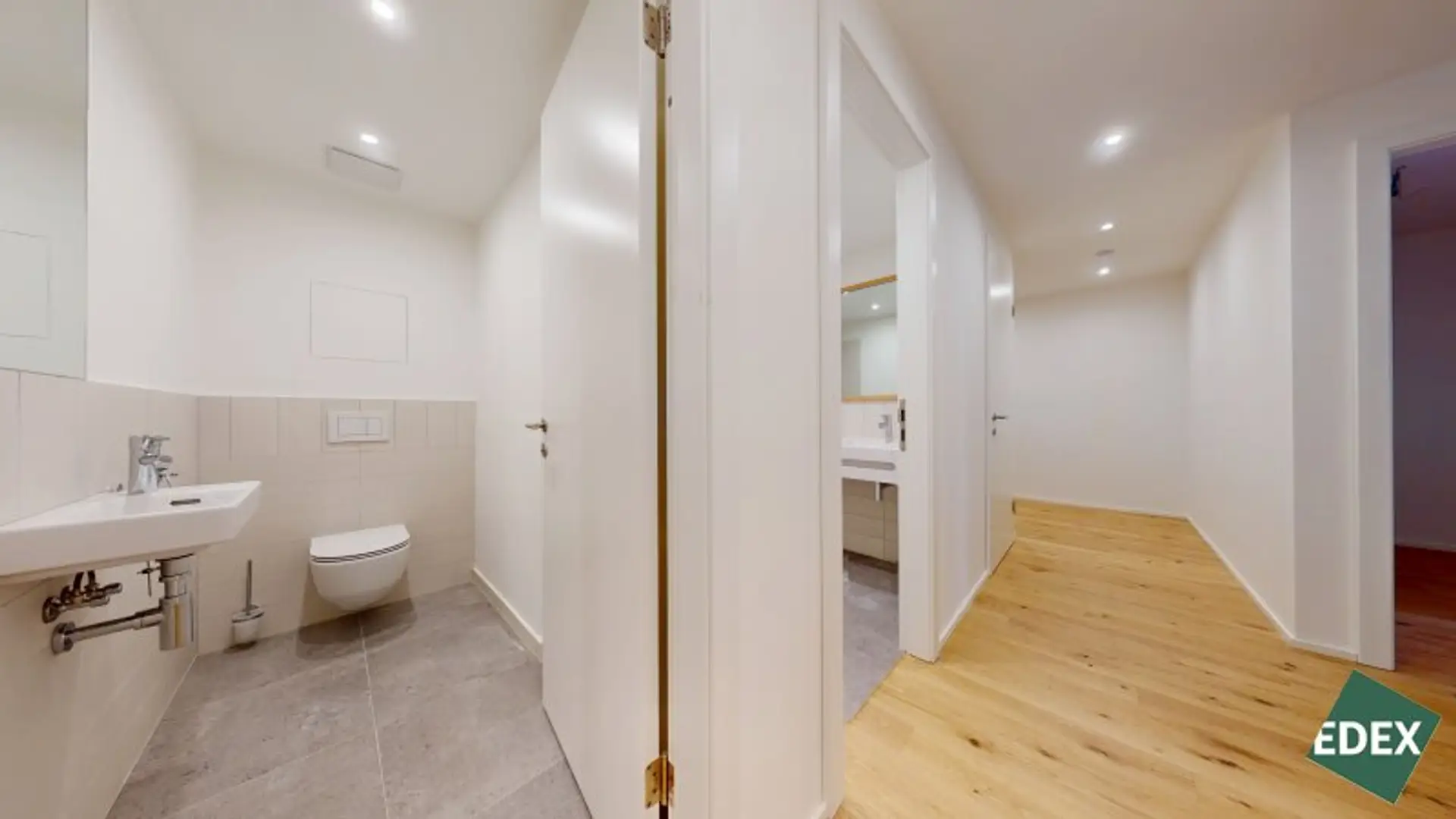Die Wohnungen wurden mit viel Liebe zum Detail geplant – mit dem Ziel, nicht nur stilvoll, sondern auch alltagstauglich zu sein. Edler Eichenparkett mit angenehmer Fußbodenheizung sorgt für ein behagliches Wohngefühl, robuste Feinsteinzeugfliesen in den Nassräumen für Langlebigkeit und Pflegeleichtigkeit.