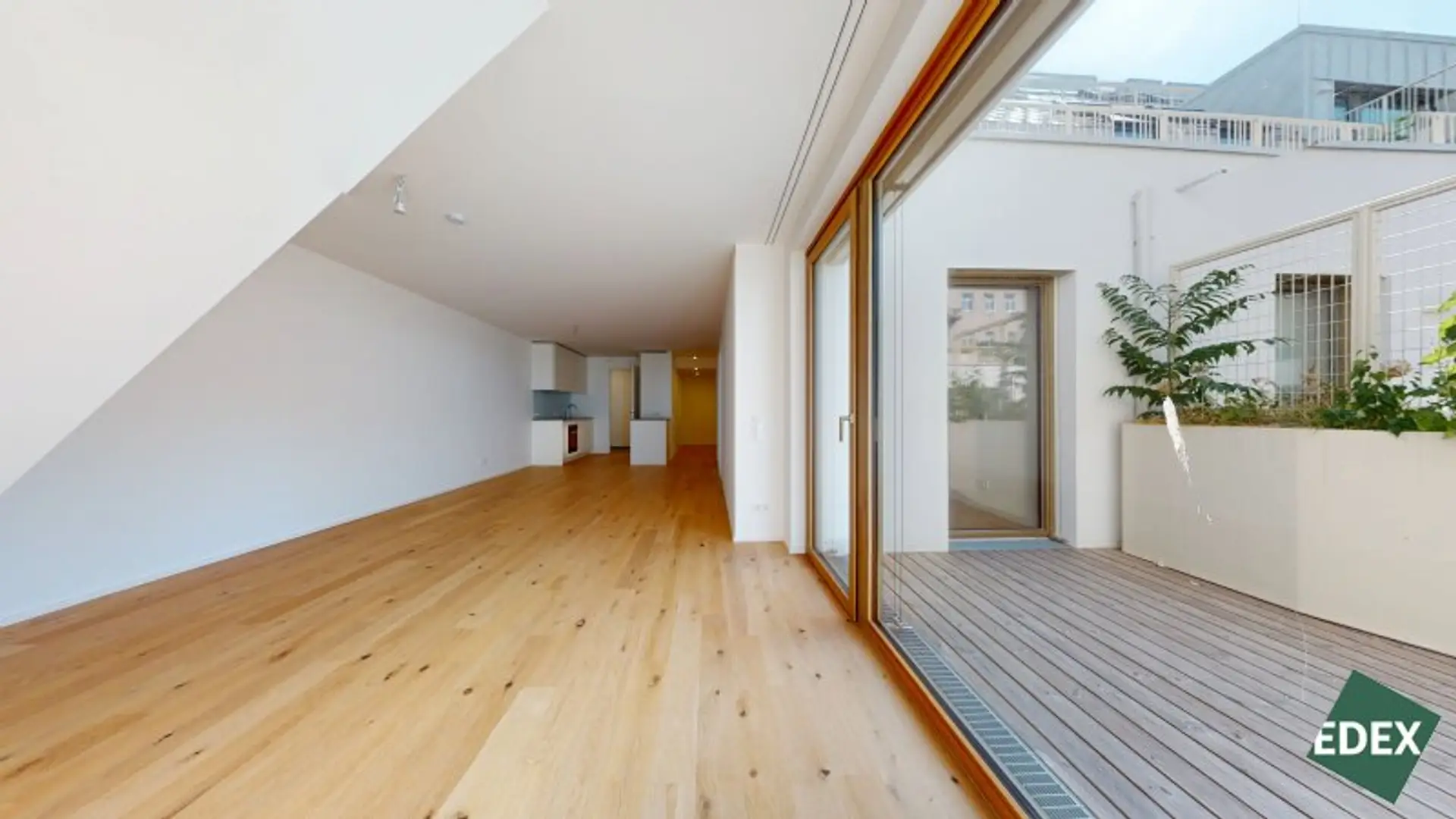 Die Wohnflächen variieren zwischen ca. 46 m² und 101 m² und bieten durchdachte Grundrisse sowie eine hochwertige Ausstattung. Jede Wohnung verfügt über eine Loggia, einen Balkon oder eine Terrasse – ein besonderes Plus in dieser urbanen Lage, das ein luftiges, offenes Wohngefühl schafft, wie man es im Zentrum Wiens nur selten findet.