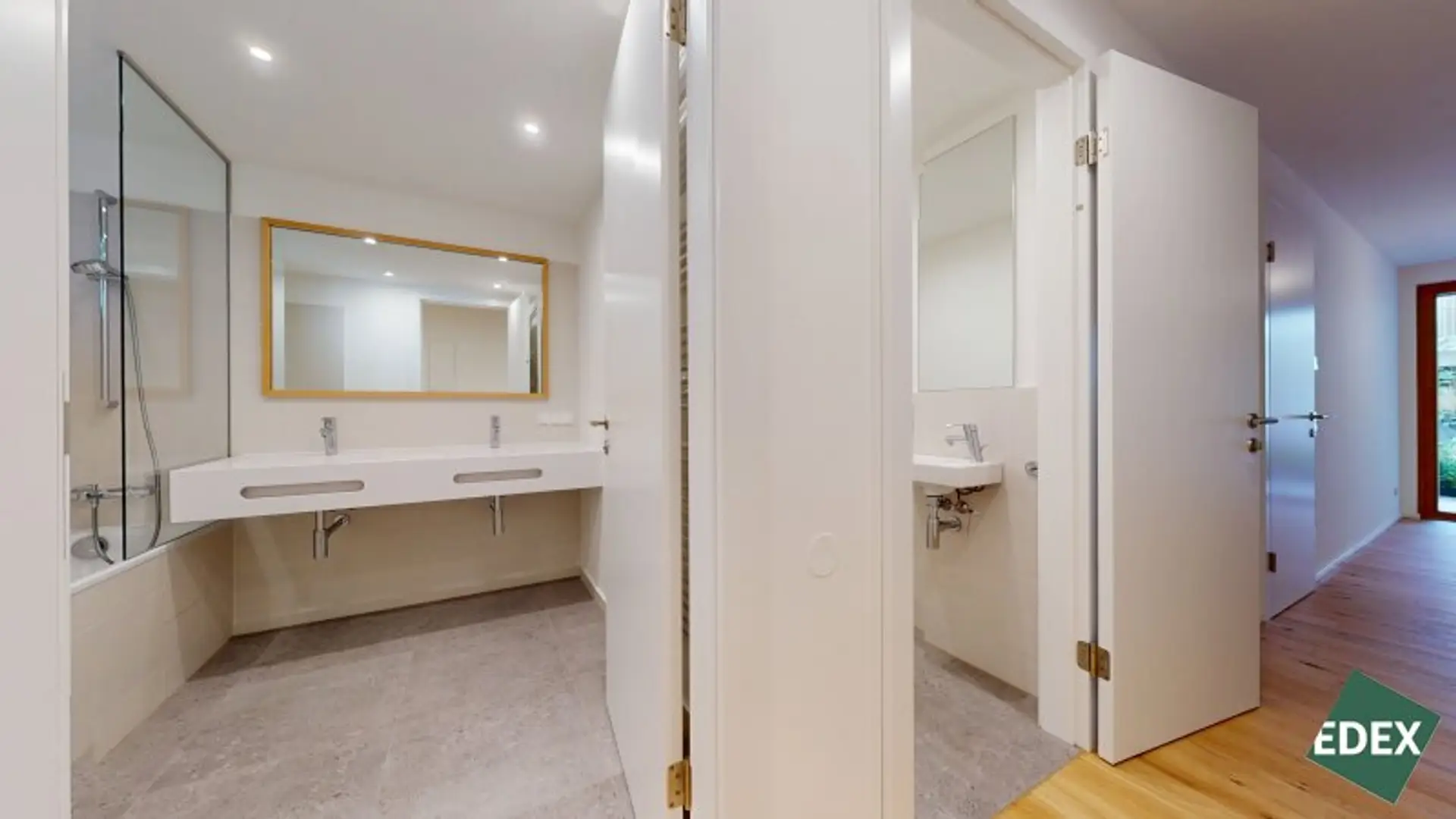 Die Wohnungen wurden mit viel Liebe zum Detail geplant – mit dem Ziel, nicht nur stilvoll, sondern auch alltagstauglich zu sein. Edler Eichenparkett mit angenehmer Fußbodenheizung sorgt für ein behagliches Wohngefühl, robuste Feinsteinzeugfliesen in den Nassräumen für Langlebigkeit und Pflegeleichtigkeit.