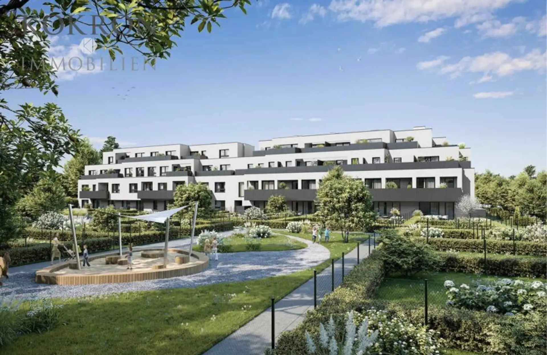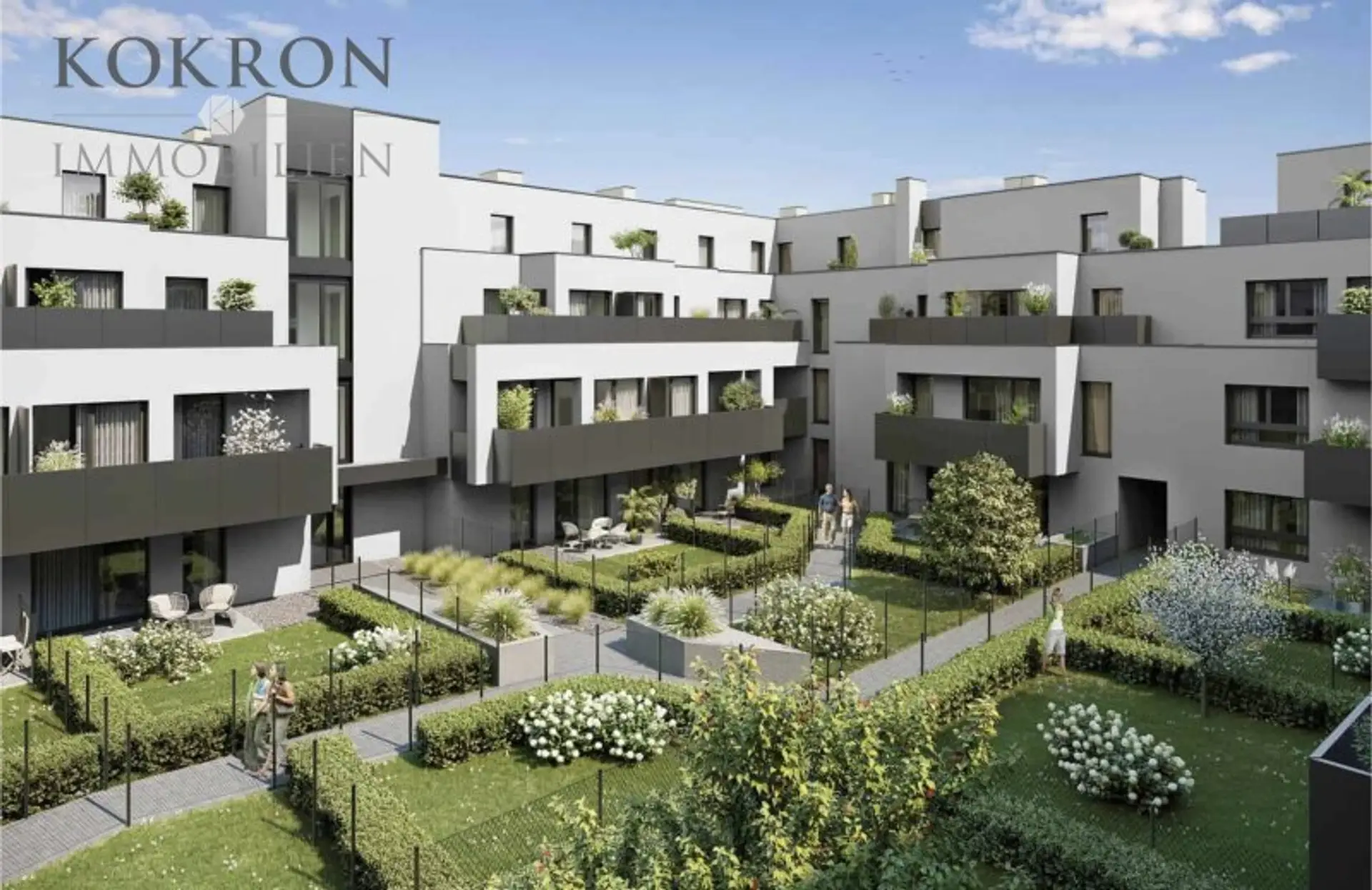 Für alle Eigentümer, auch in den oberen Geschossen, offeriert sich die besondere optionale Möglichkeit eines eigenen Gartenabteils. Alle Gärten werden mit Strom- und Wasseranschluss ausgeführt.