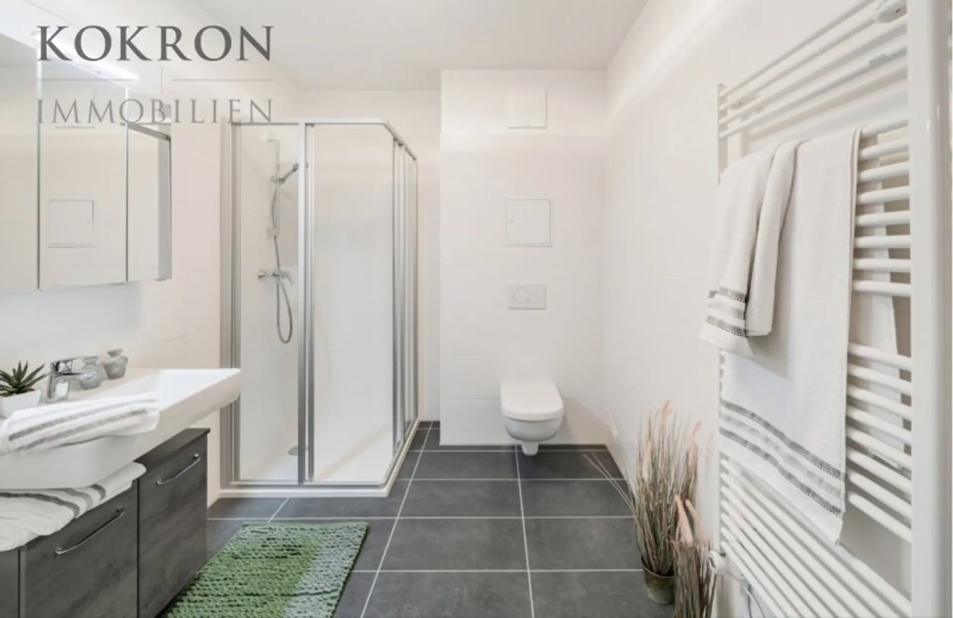 Ich präsentiere Ihnen hier beispielhaft eine südseitig ausgerichtete 3-Zimmer Neubauwohnung im Erstbezug mit 59,7m² Wohnfläche, Loggia, Balkon und einem großzügigen Garten.