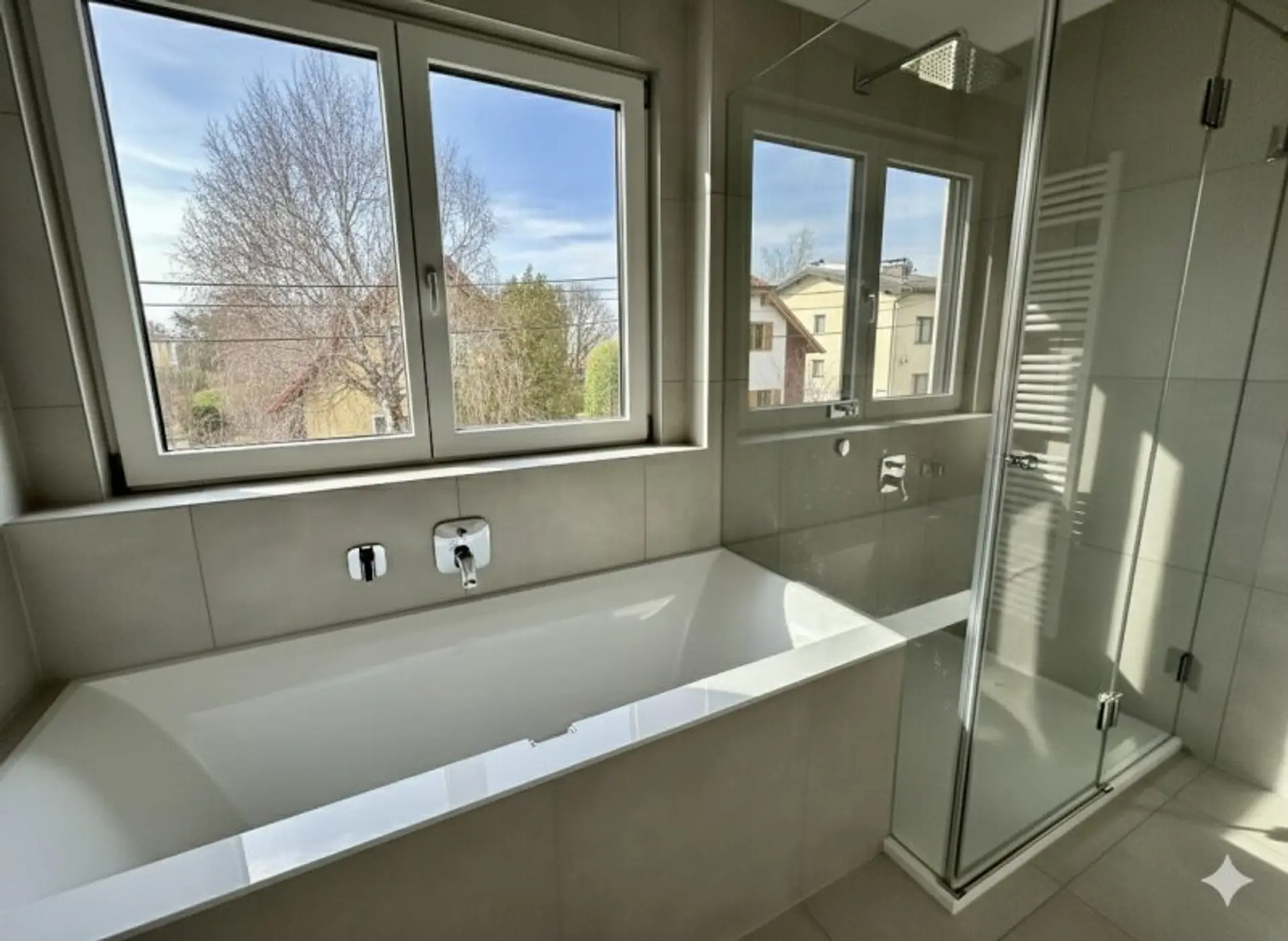 -) Tageslichtbad mit Doppelwaschtisch, Badewanne, Dusche