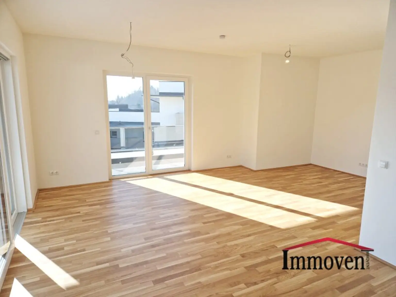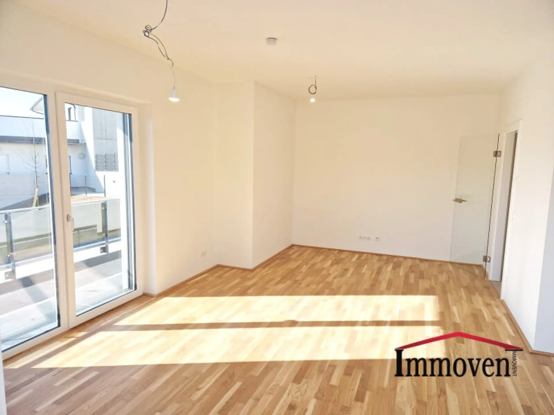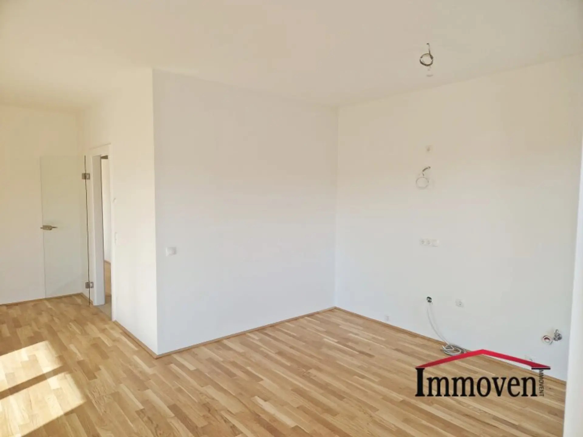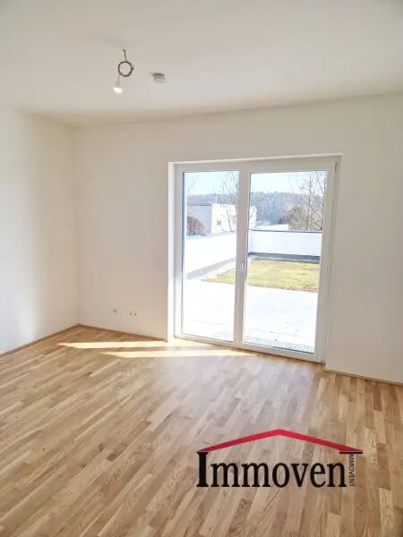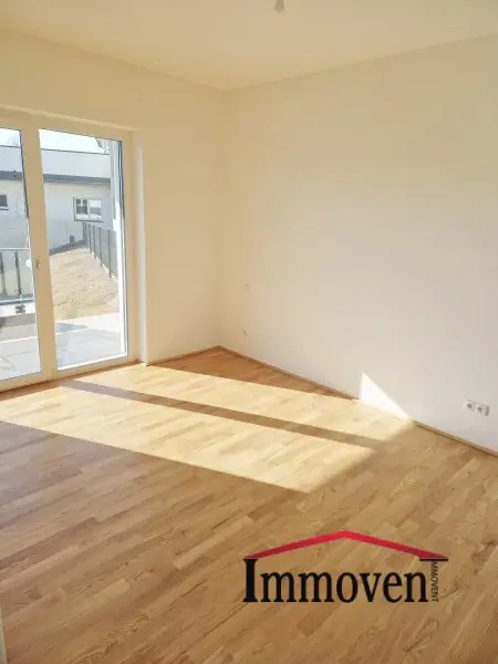 + Wohnraum mit offener Küche (es sind nur die Anschlüsse vorhanden) und Zugang auf die Terrasse weiter auf die begrünte Terrasse und in den Garten