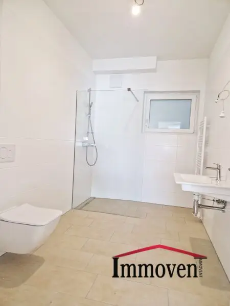 + Bad mit Dusche, Toilette, Waschmaschinenanschluss und Fenster