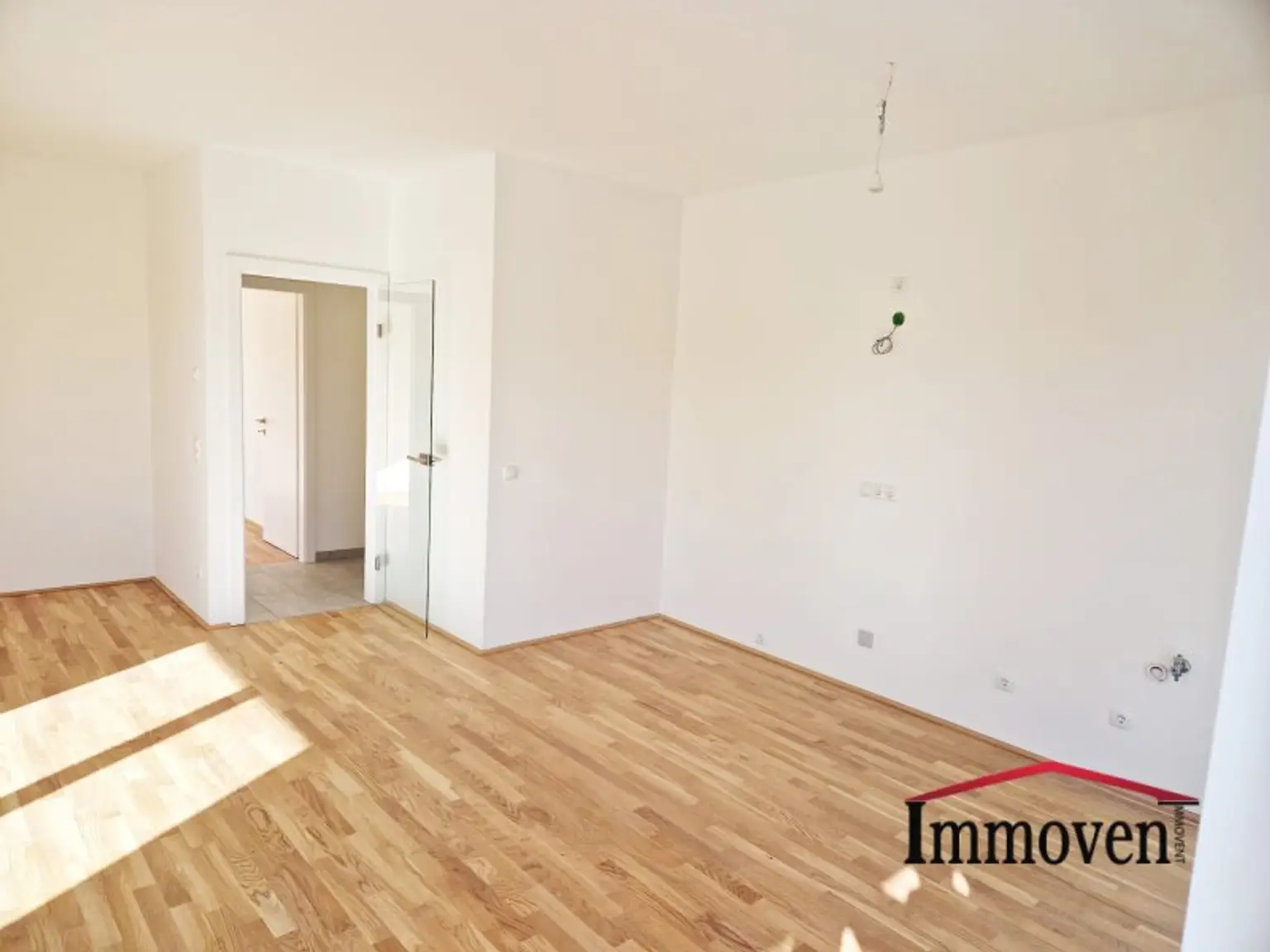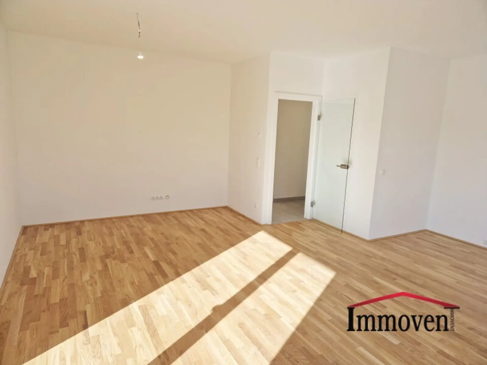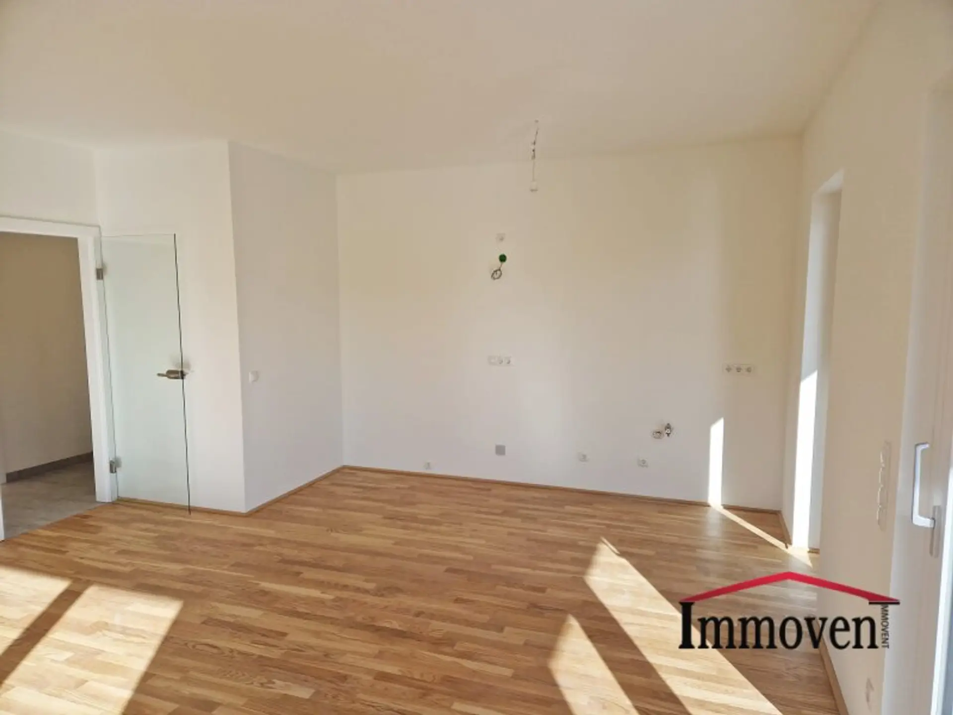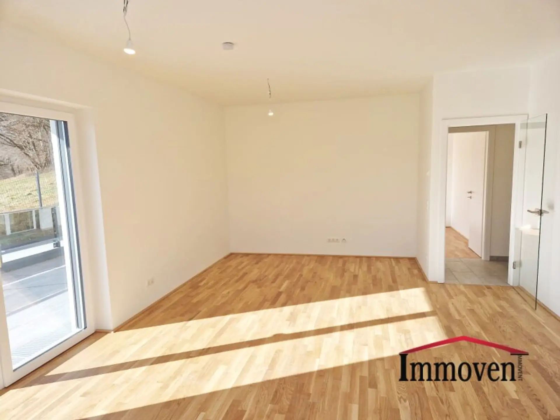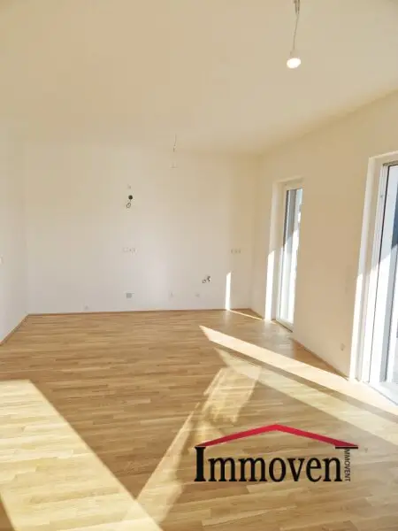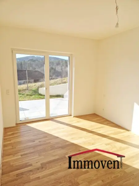+ Wohnraum mit offener Küche (es sind nur die Anschlüsse vorhanden) und Zugang auf die Terrasse und in den Garten