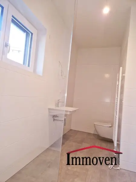 + Bad mit Dusche, Toilette, Waschmaschinenanschluss und Fenster