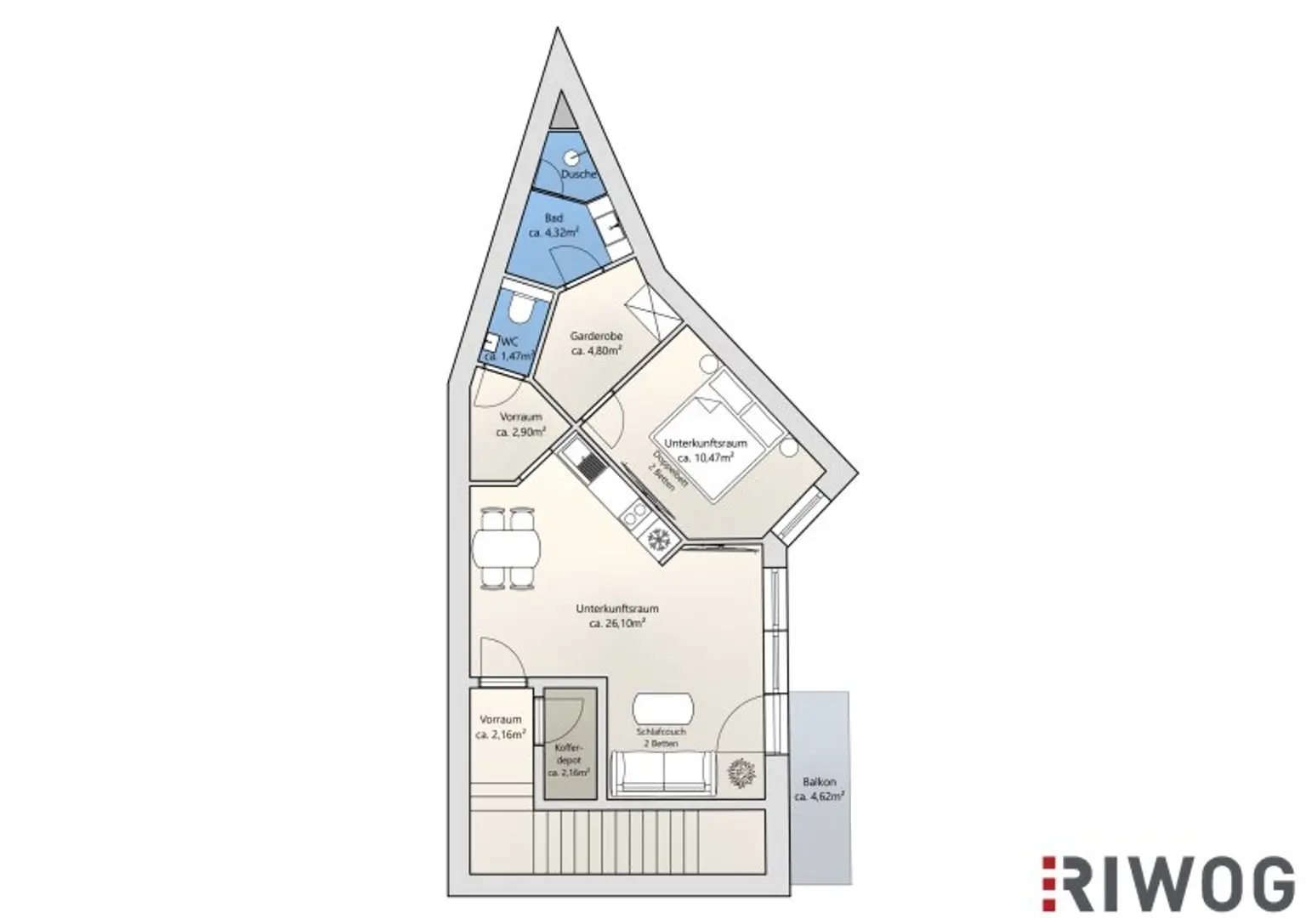 * OBERGESCHOSSAPARTMENT: 50,07m² + 4,62m² Balkon