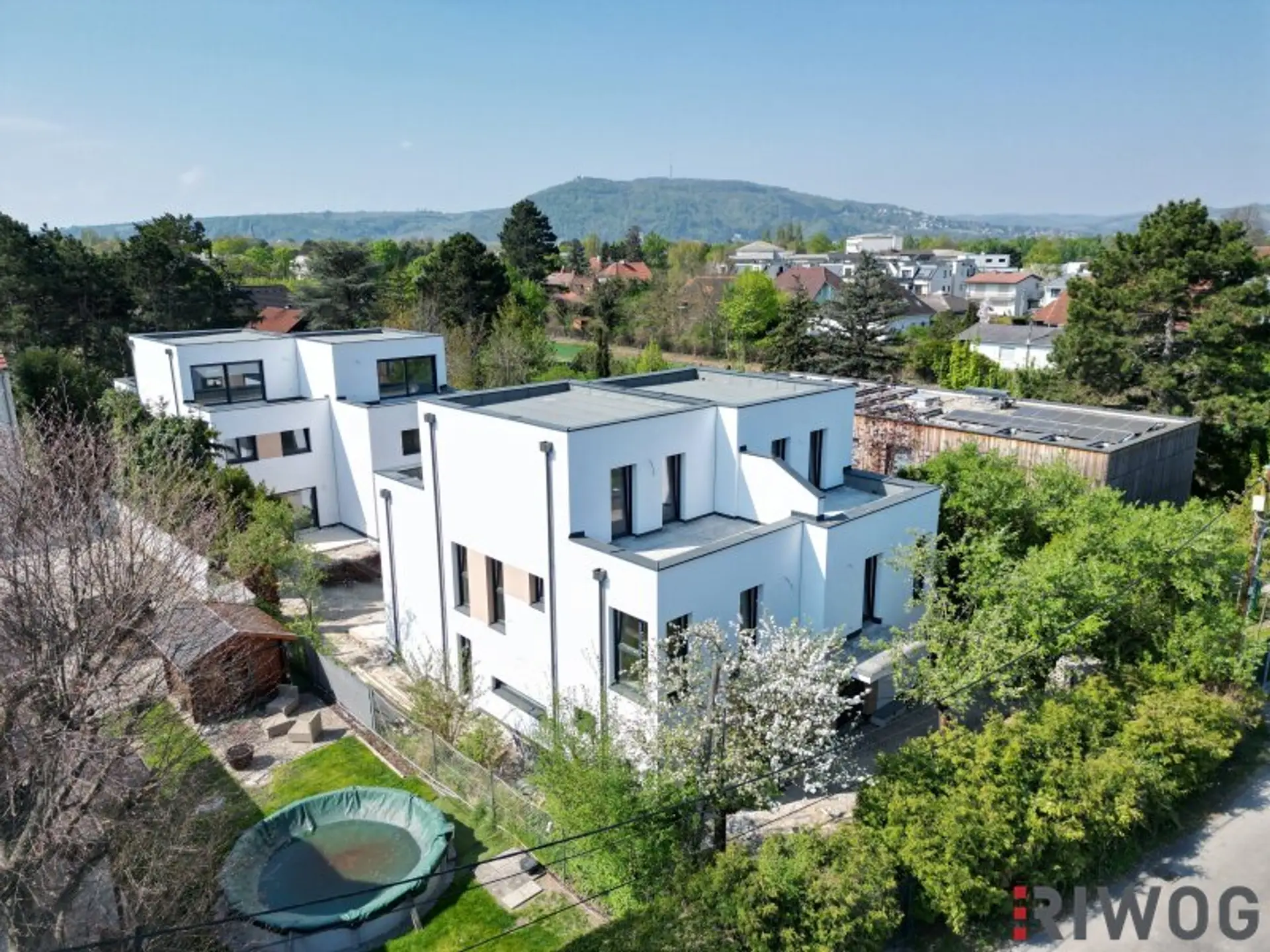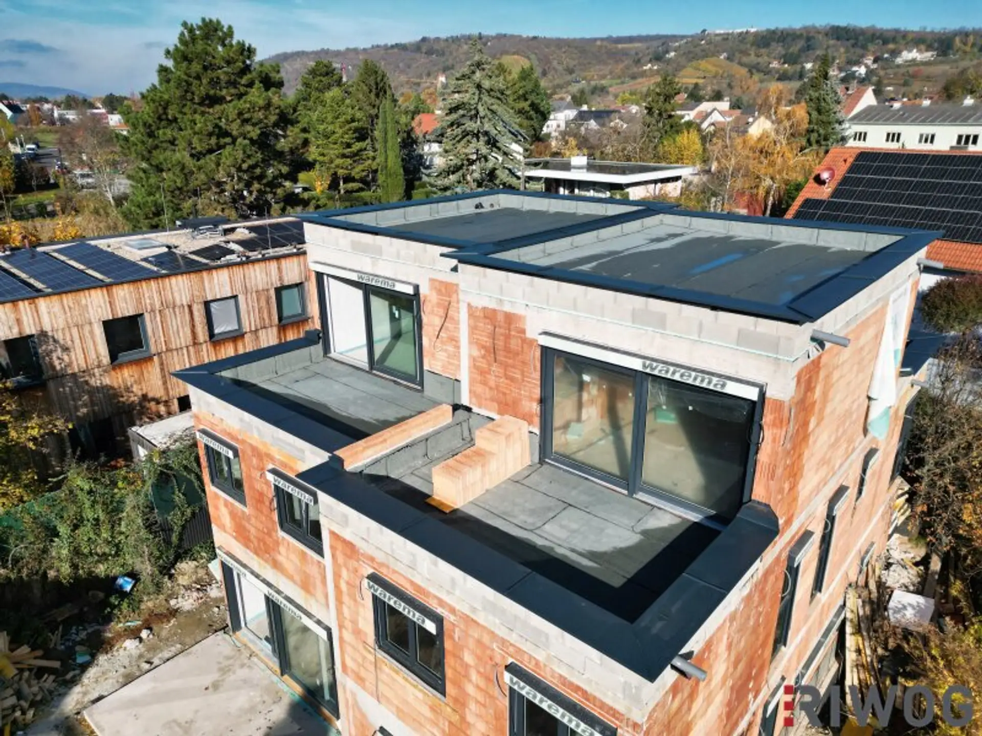 Herrlicher Grünblick bis auf den Bisamberg bzw. bis über die Donau und den Leopoldsberg von den oberen Geschossen.