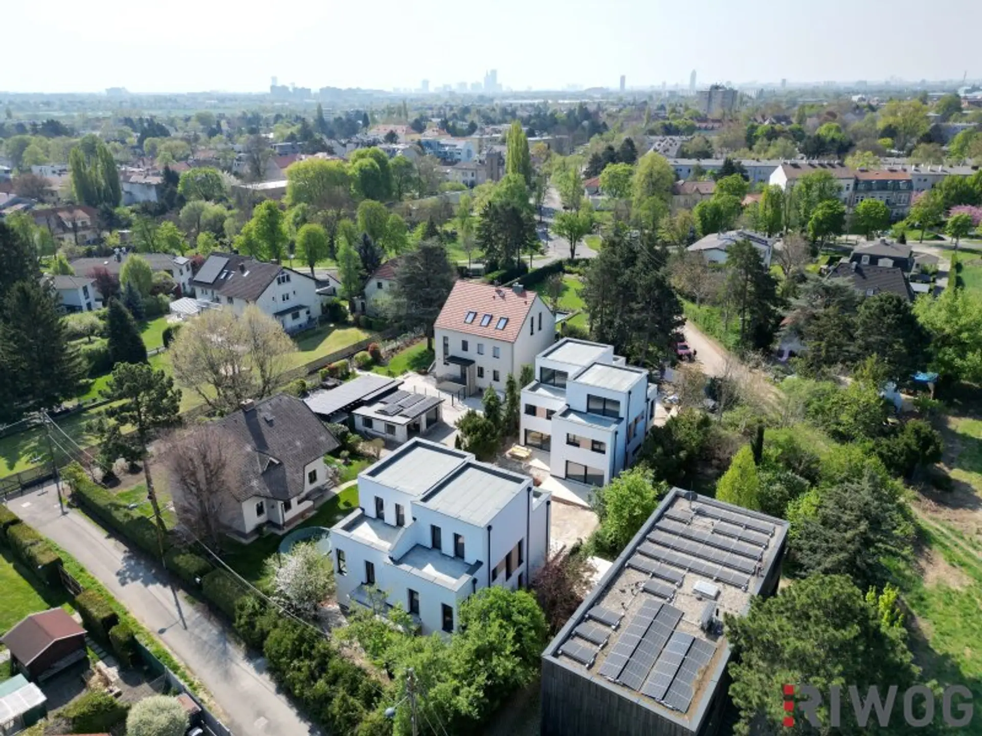Zwischen Bäumen, Feldern und Einfamilienhäusern bietet die Lage eine enorme Ruhe - ja schon einen Erholungscharakter - und dennoch ist mit einem Spaziergang auch das Center 21 (Fachmarktzentrum) zu erreichen, wo man die Besorgungen des täglichen Bedarfs erledigen kann. In knapp einer Viertelstunde erreicht man mit dem Auto das Wiener Zentrum, daher: die ideale Lage, wenn man es ruhig & grün mag, aber trotzdem schnell in der Stadt sein will.