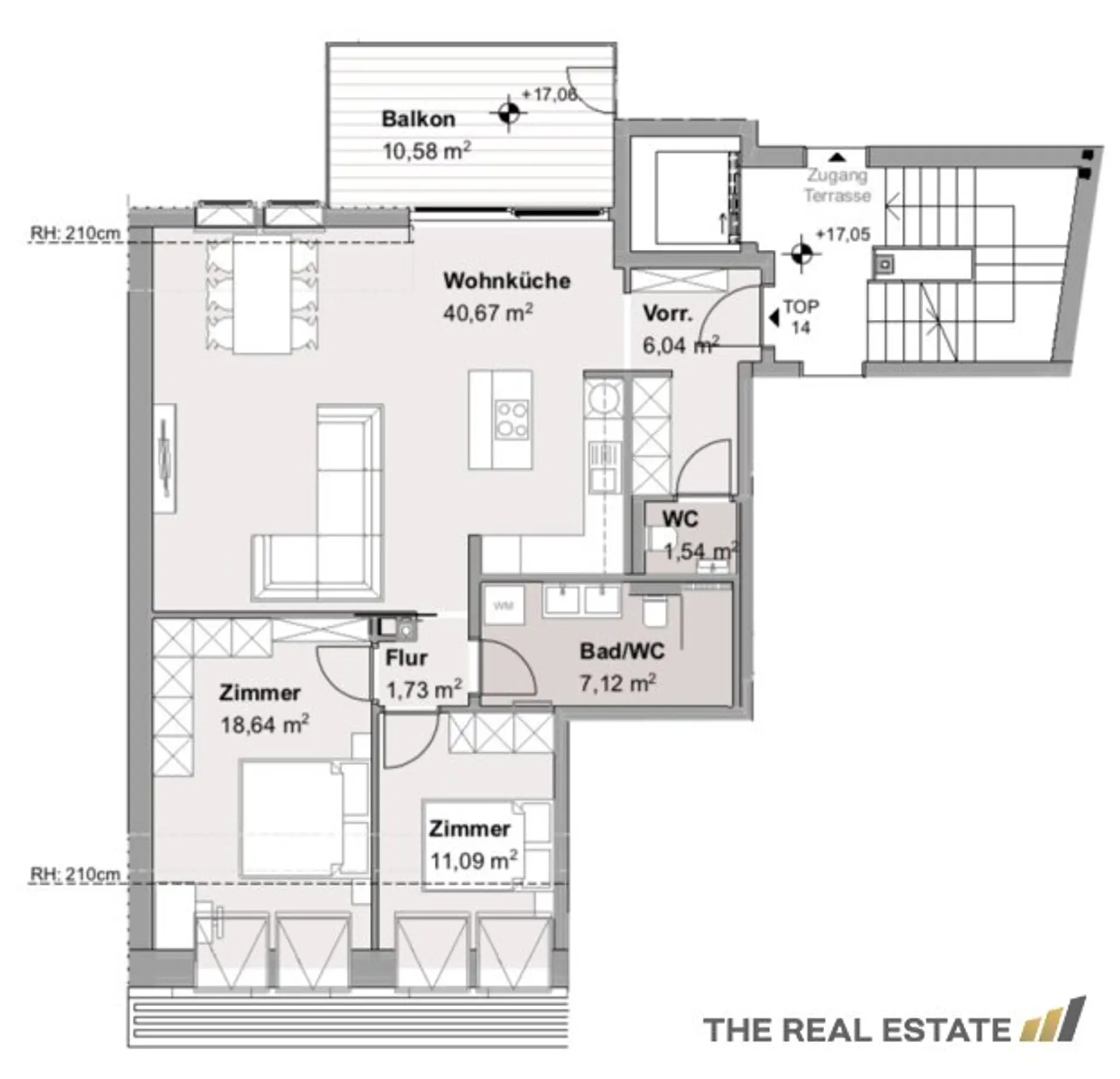 Die angebotene Wohnung liegt auf der 5. Etage. Sie verfügt über ein separates Badezimmer mit WC und sowie eine Terrasse vor dem großen Wohn-Ess -Zimmer. 2 Schlafzimmer sind separat begehbar. Ein drittes Schlafzimmer wäre im Bereich des Wohnzimmers möglich.