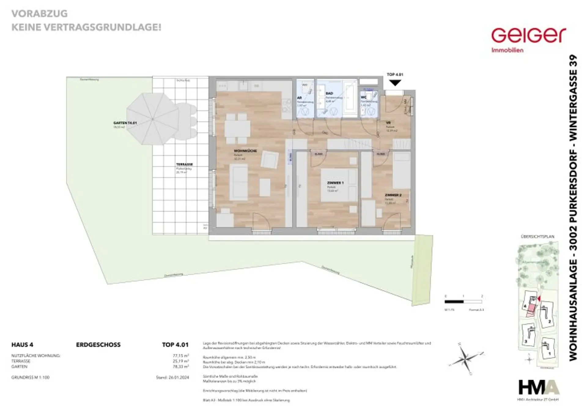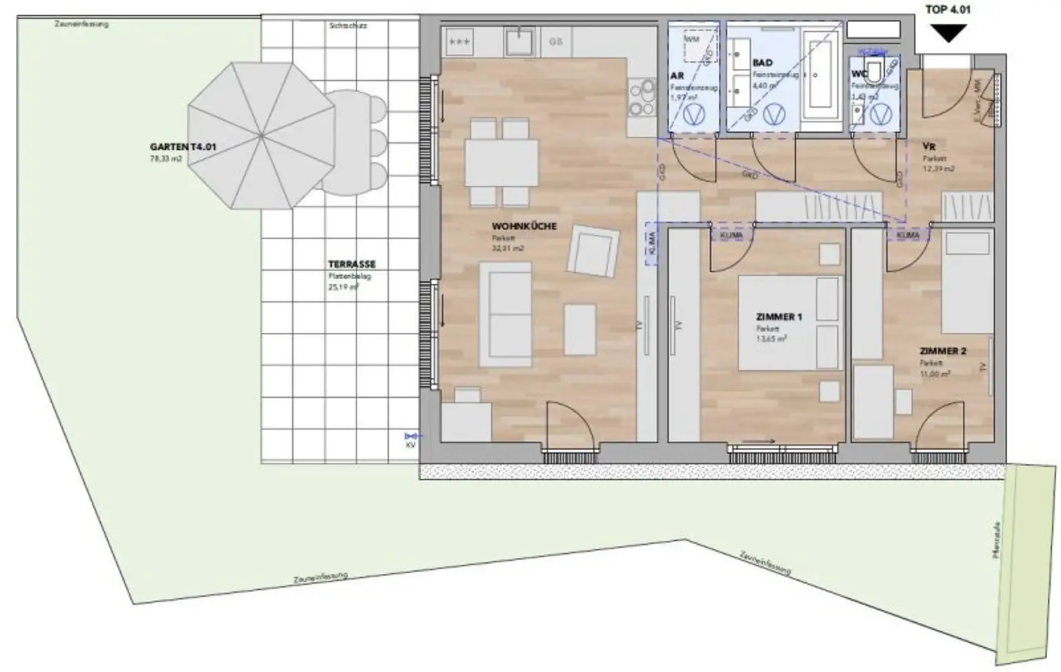 NEU - Erstklassige 3-Zimmer-Wohnung mit Garten und Terrasse - Top 4.01