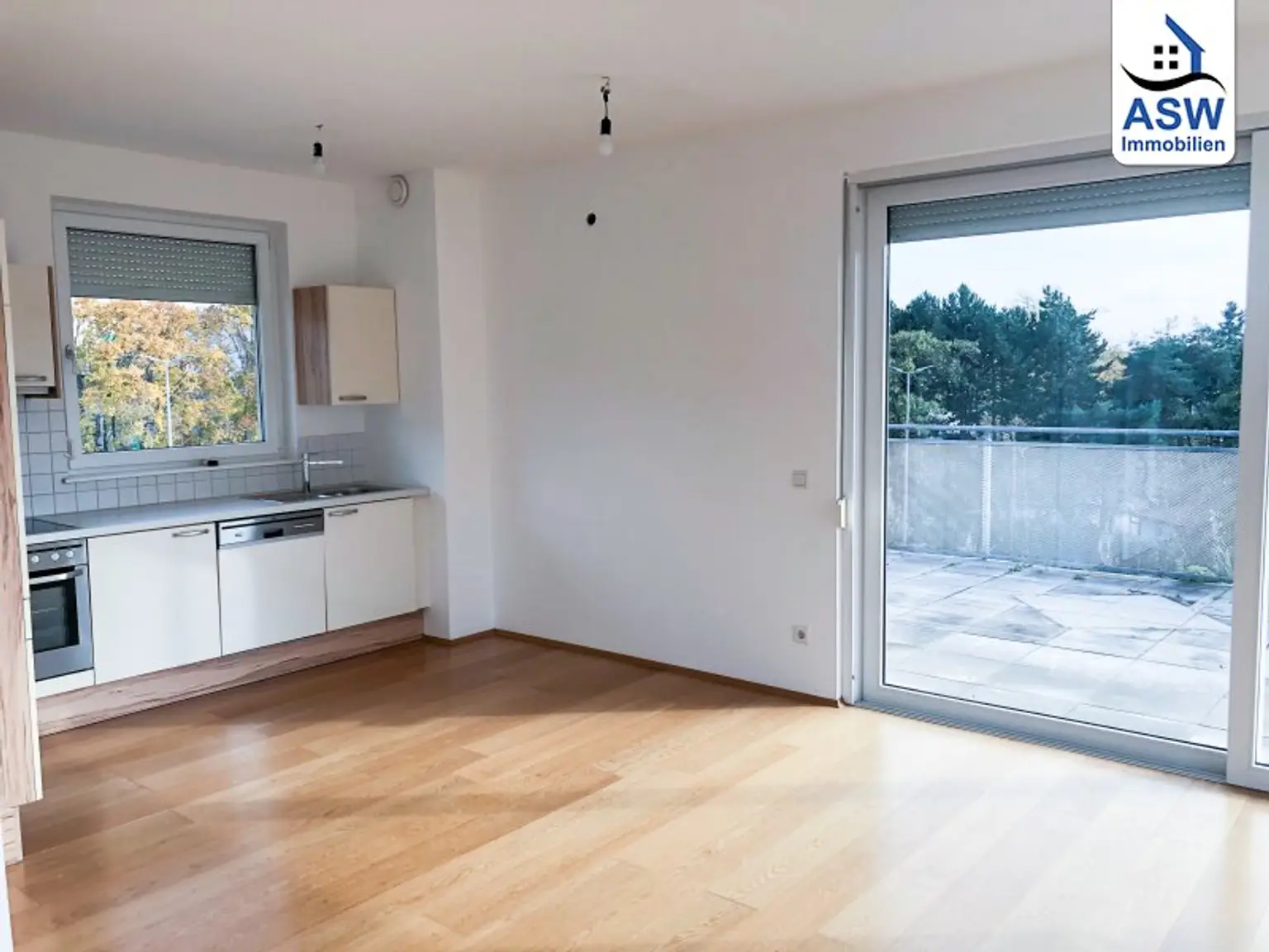 - Wohn-/Essbereich mit angrenzender Komplettküche inkl. E-Geräten und Abstellraum