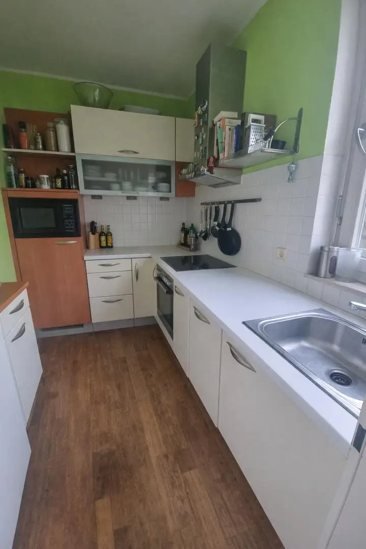 Die sonnige 3-Zimmer-Wohnung liegt im 2. Liftstock eines gepflegten Mehrparteienhauses. Vom großzügigen Wohn-Esszimmer gelangt man direkt auf den südseitig ausgerichteten Balkon, der einen herrlichen Blick ins Grüne, auf den Teich und auf den Untersberg bietet – ideal zum Entspannen und Genießen. Die Wohnung ist mit einer funktionalen Einbauküche ausgestattet. Das Badezimmer verfügt über eine Dusche sowie einen Waschmaschinenanschluss. Das WC ist separat untergebracht. Zwei helle Schlafzimmer bieten ausreichend Platz für individuelle Nutzungsmöglichkeiten – ob als Schlaf-, Kinder-, Gäste- oder Arbeitszimmer. Beheizt wird die Wohnung über eine Gaszentralheizung. Ein eigenes Kellerabteil mit etwa 6 m² bietet zusätzlichen Stauraum. Ein zur Wohnung gehörender Tiefgaragenstellplatz rundet dieses attraktive Wohnangebot ab.