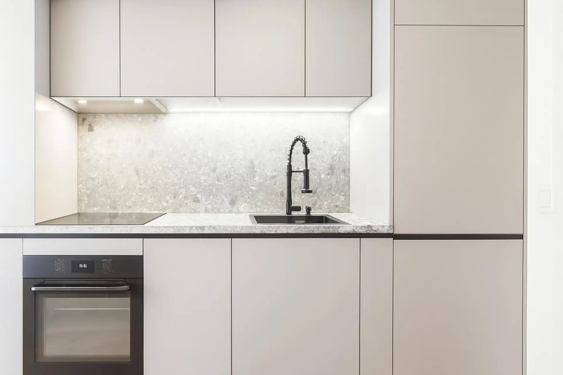 • Küche: Herd mit Ceranfeld, Kühl-Gefrier-Kombi, Spülbecken, Geschirrspüler