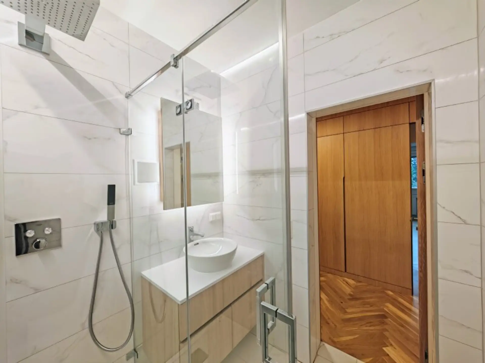 - von der Kennedybrücke mit den Bussen: 56A, 56B oder 58A in nur 6 bzw. 7 min. zum Haus (4 min. Fahrzeit und 3 min. Fußweg)