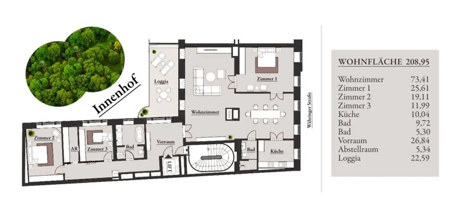 Votivparknähe. Die Nähe zum 1. Bezirk eröffnet ein breites Angebot an Gastronomie, Einkaufsmöglichkeiten und kulturellen Highlights. Die U-Bahn-Station Schottentor (U2) sowie mehrere Straßenbahn- und Buslinien liegen nur rund fünf Gehminuten entfernt und sorgen für eine optimale Anbindung in alle Teile der Stadt.