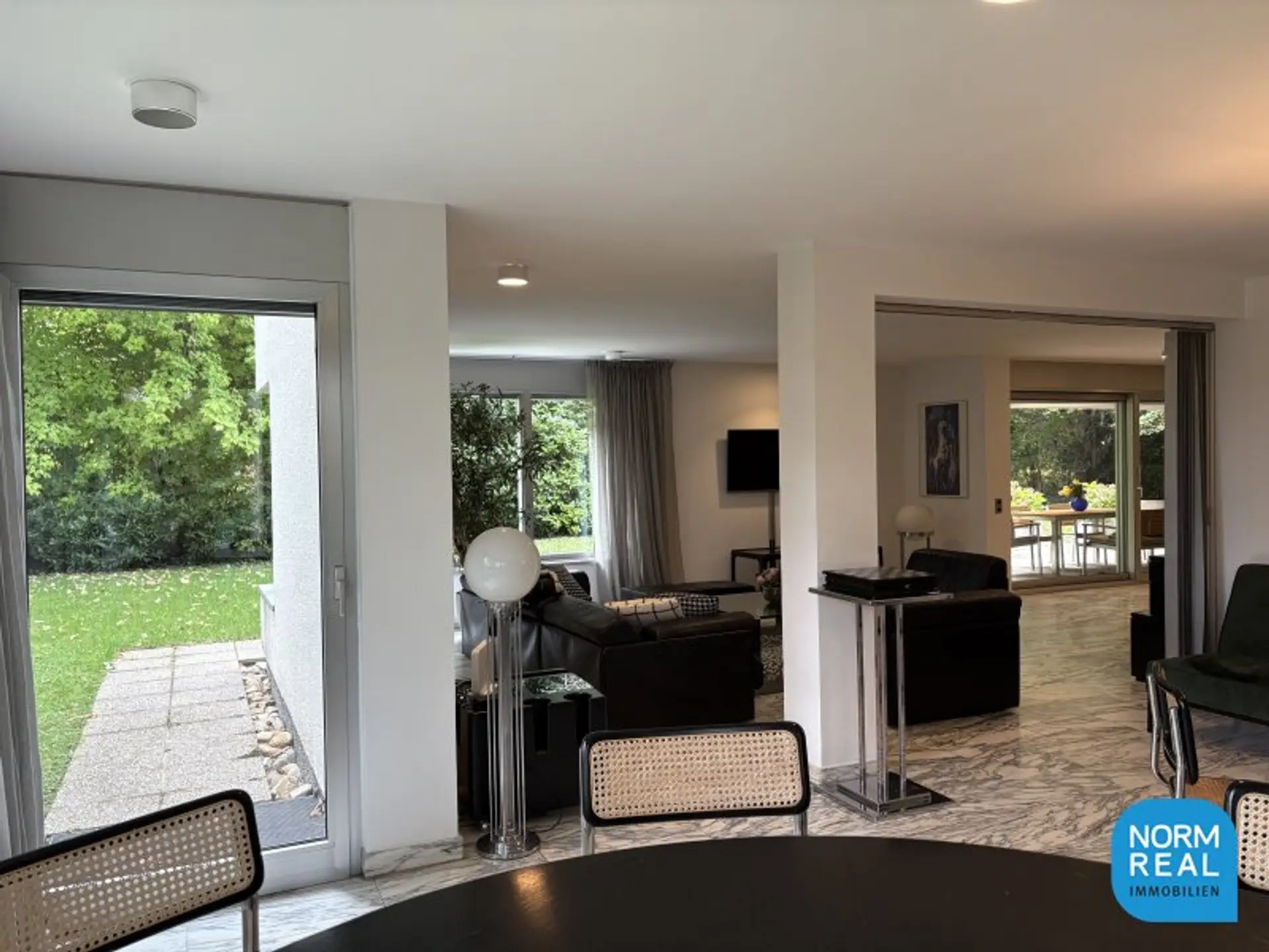 grosser Wohnsalon mit Ausgang zur Terrasse und Garten