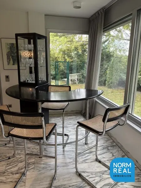 Elegant möblierte Terrassenwohnung ruhig umgeben von einem großen Garten