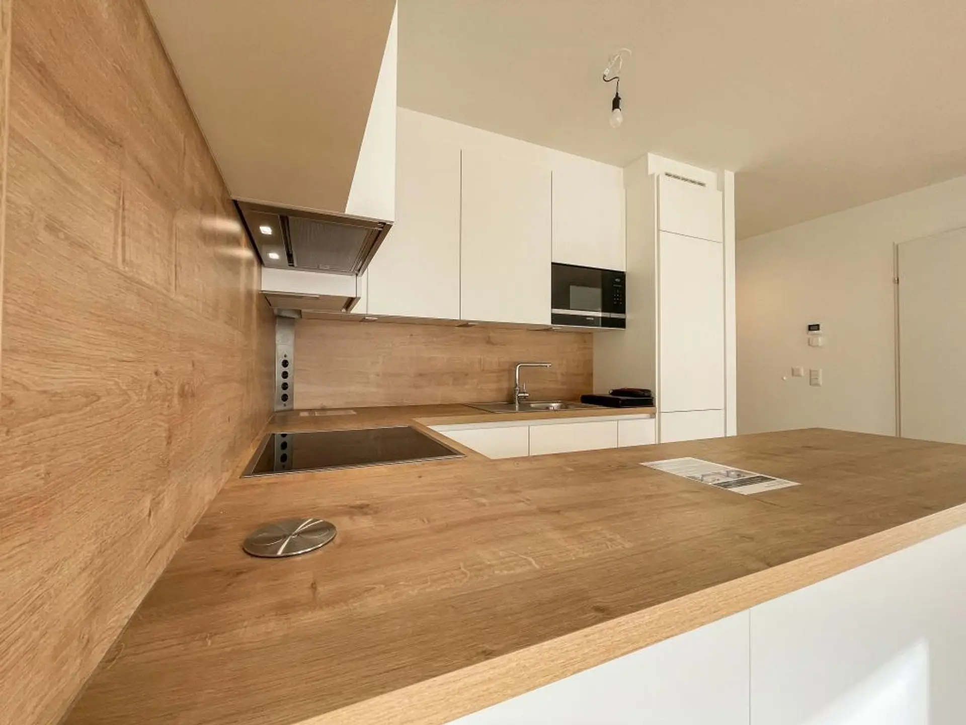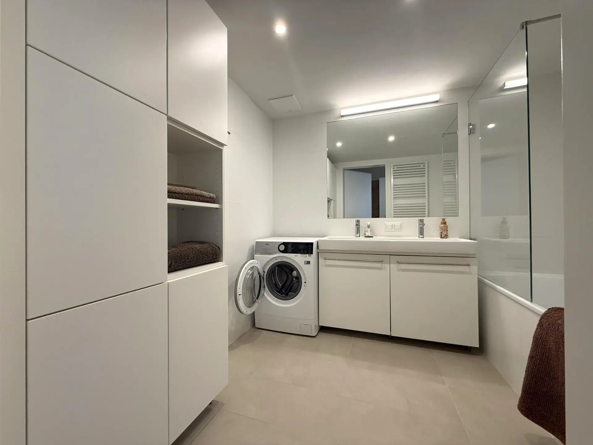 It offers high-end features, air conditioning in all rooms, a thoughtful layout, and a 14 m² terrace with a beautiful view of greenery.