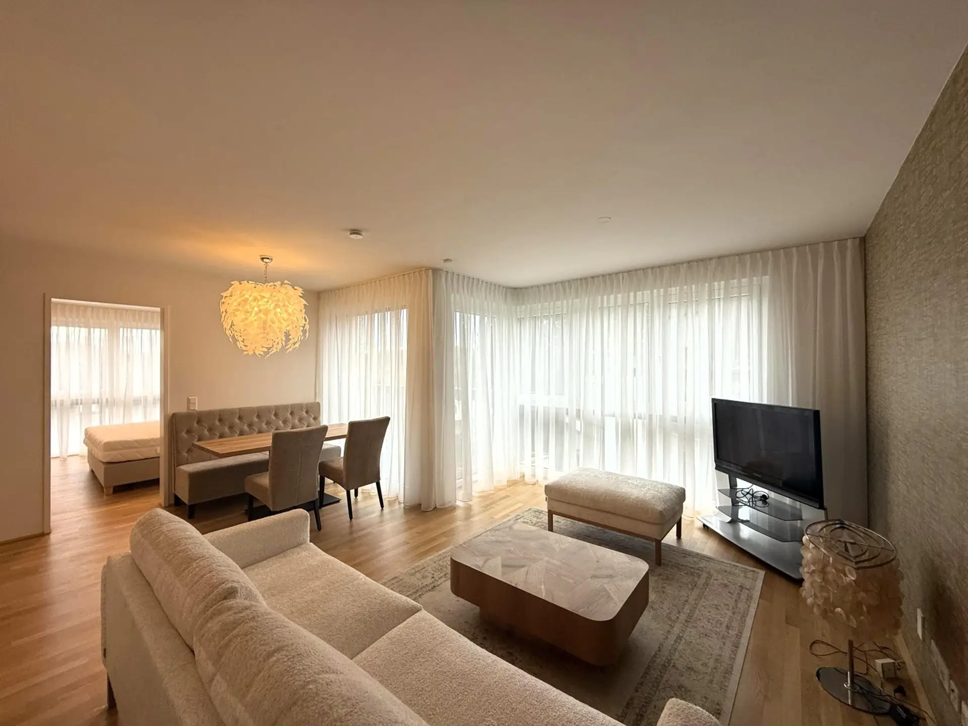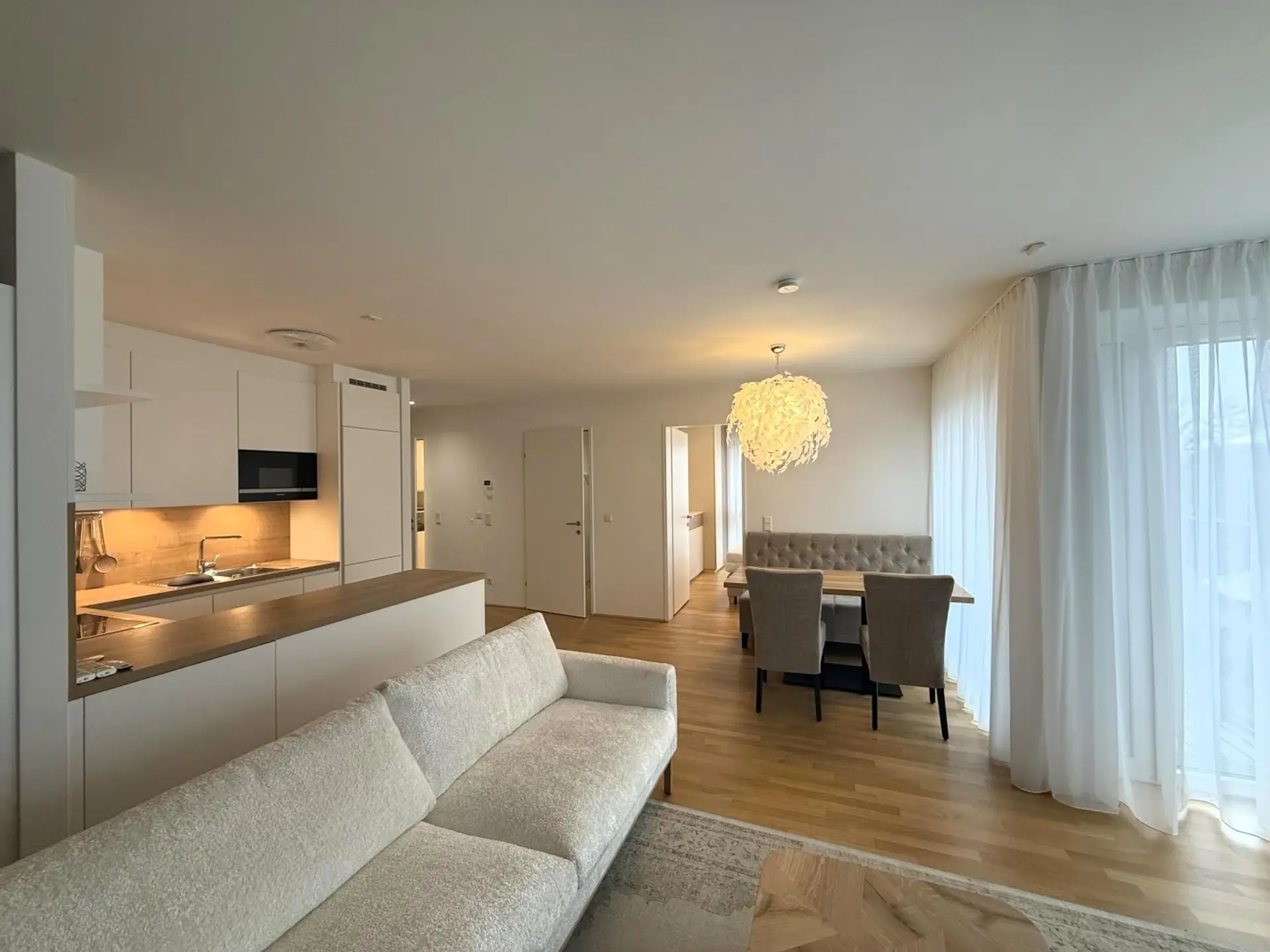 Direkt am Übergang zwischen Stadt und Natur, wird eine komplett möblierte, moderne 3-Zimmer-Terrassenwohnung in einer Ende 2020 fertiggestellten Wohnhausanlage zur befristeten Miete auf zunächst 3 Jahre angeboten.