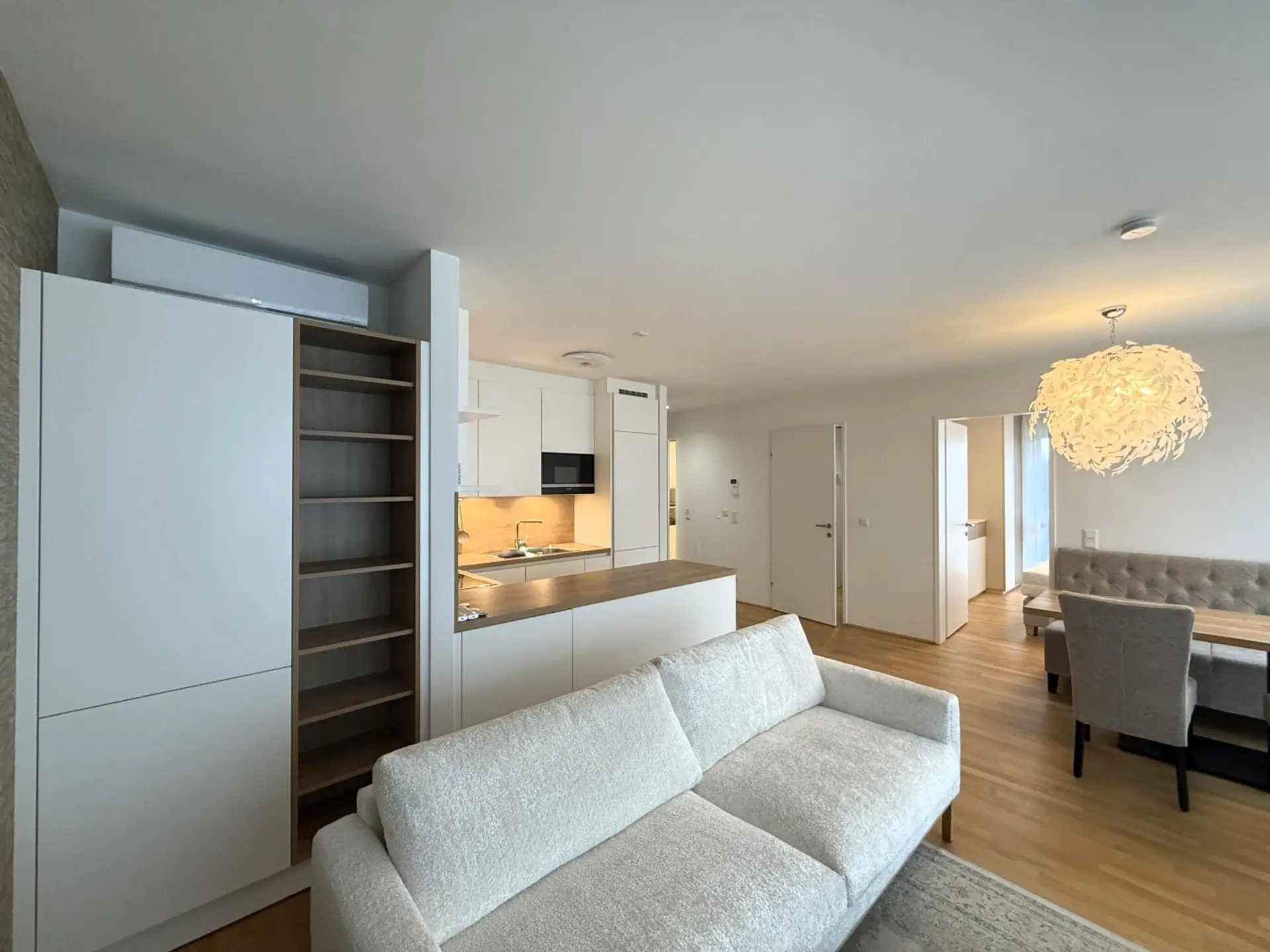 Diese außergewöhnliche Wohnung verbindet urbanes Design mit naturnahem Wohngefühl. Sie bietet exquisite Ausstattung, Klimatisierung in allen Räumen, eine durchdachte Raumaufteilung und eine 14 m² große Terrasse mit herrlichem Grünblick.