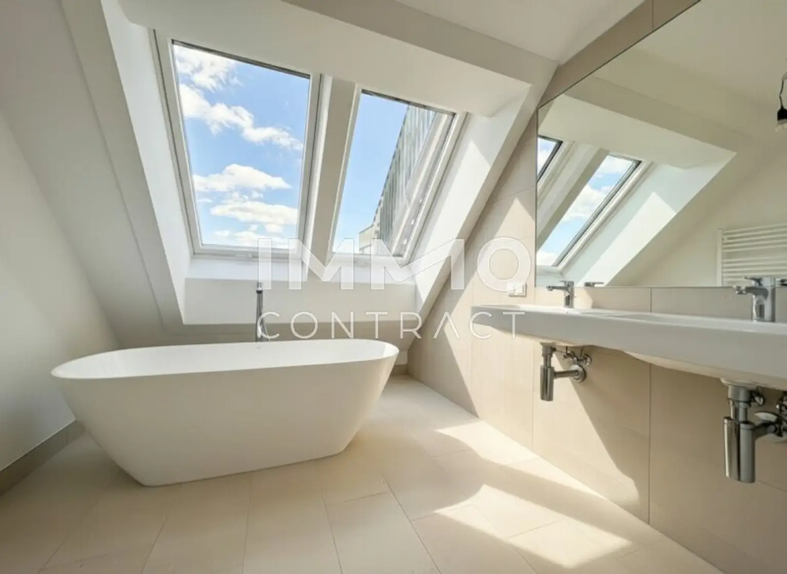 Willkommen in Ihrem neuen Zuhause: Diese exklusive 3-Zimmer-Maisonette im Dachgeschoss erstreckt sich über zwei Wohnebenen und rund 88 m² Wohnnutzfläche und begeistert mit einer privaten Dachterrasse samt beeindruckendem Rundumblick. Großflächige Dachfenster sorgen für ein lichtdurchflutetes Ambiente, während Klimaanlagen zusätzlichen Komfort auf höchstem Niveau bieten. Die großzügige Wohnküche mit direktem Terrassenzugang bildet das Herzstück der oberen Ebene, ergänzt durch zwei komfortable, sehr private Schlafzimmer auf beiden Ebenen mit jeweils angebundenen Bädern. Mehrere Terrassen auf ingesamt 3 Ebenen laden dazu ein, zu jeder Tageszeit die Sonne und die besondere Atmosphäre dieses außergewöhnlichen Zuhauses zu genießen.