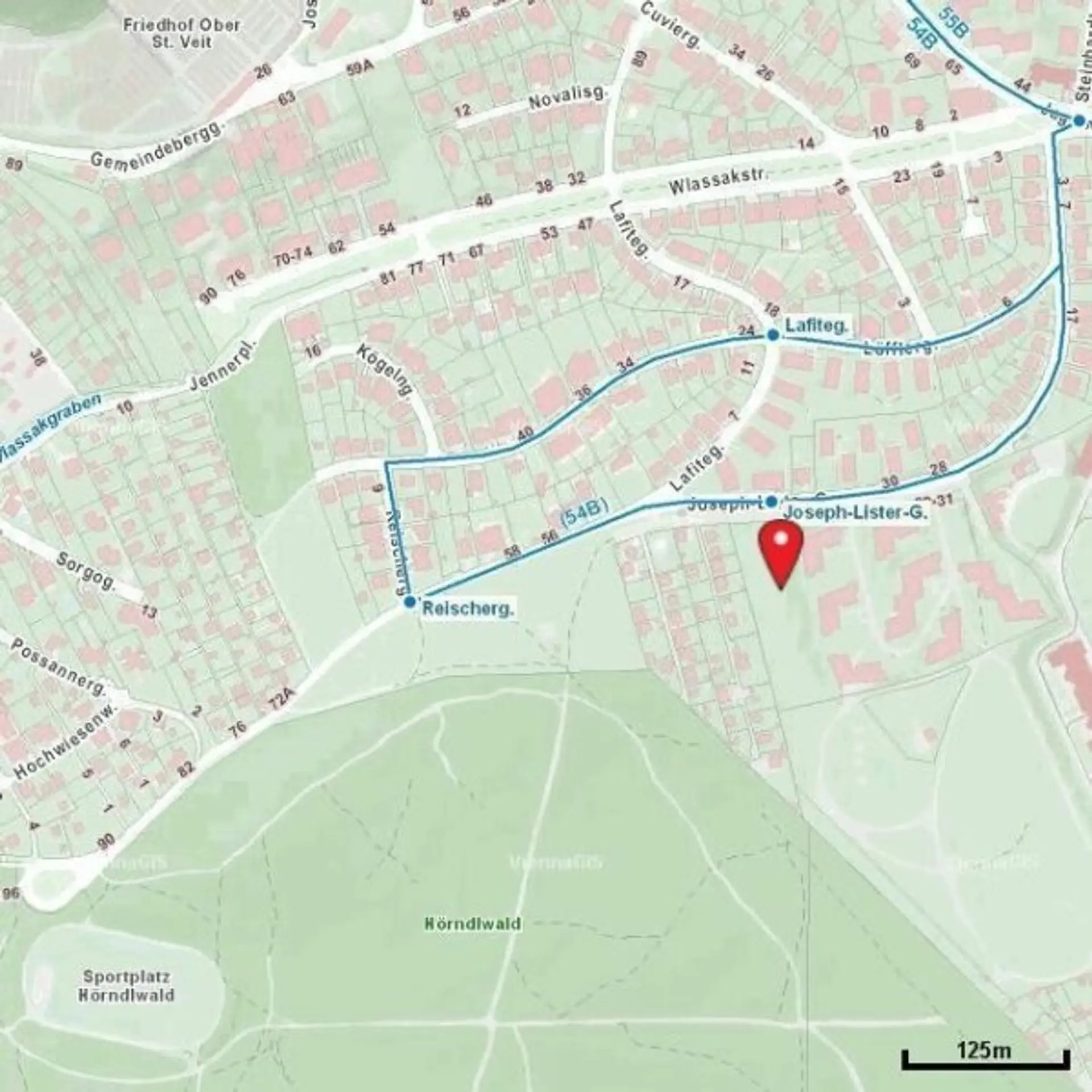 Die öffentliche Anbindung ist mit der Buslinie 54B gegeben, die zur U4-Station Ober St. Veit führt.