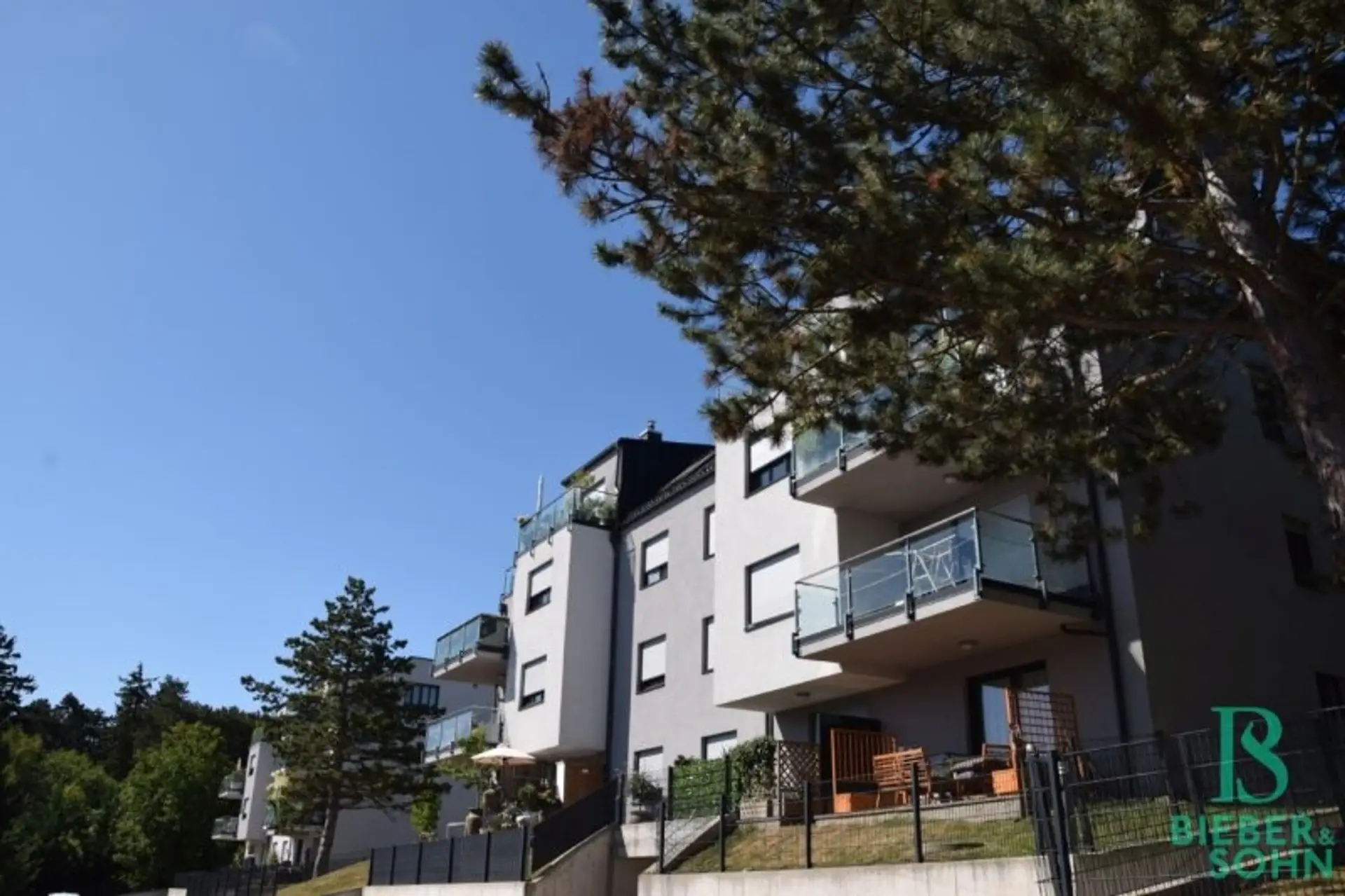 Die drei architektonisch aufwendig gestalteten Neubauten befinden sich in herrlicher Grünlage inmitten des 13. Bezirkes beim Hörndlwald.