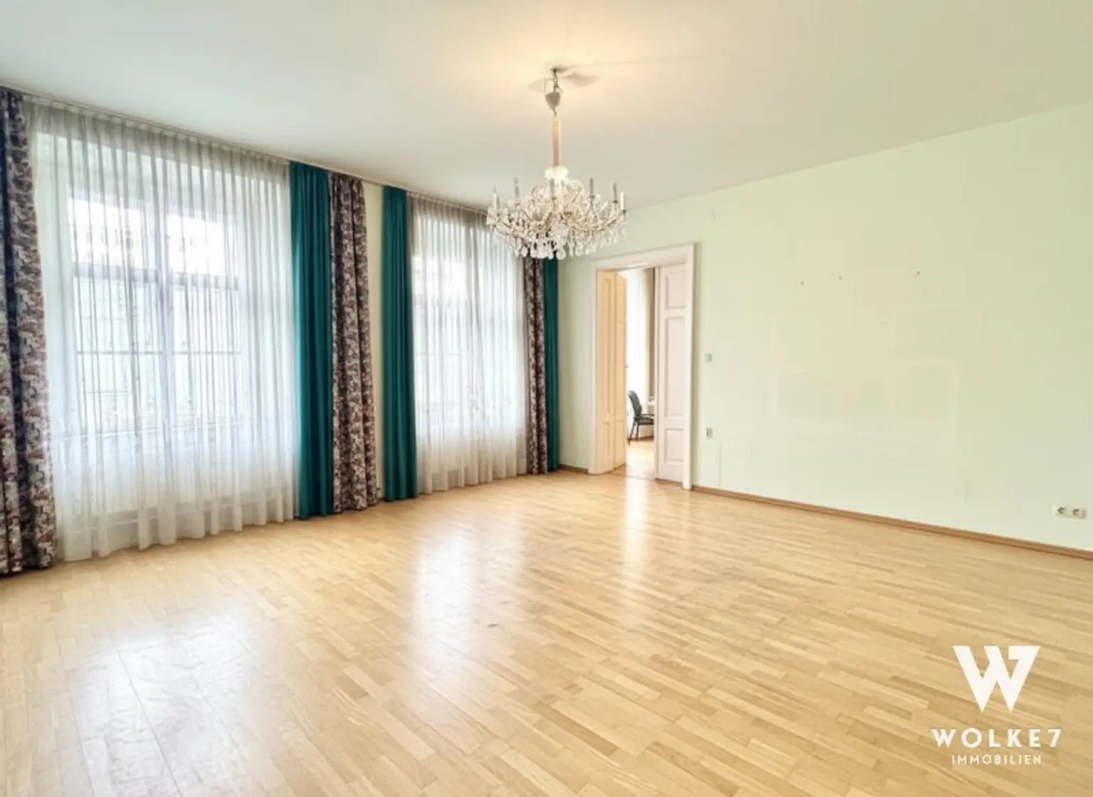 Ein besonderes Highlight ist das Kabinett, das sich ideal als Arbeitsraum eignet. Teile der vorhandenen Möblierung können auf Wunsch im Objekt verbleiben – in Abstimmung mit dem Erwerber.