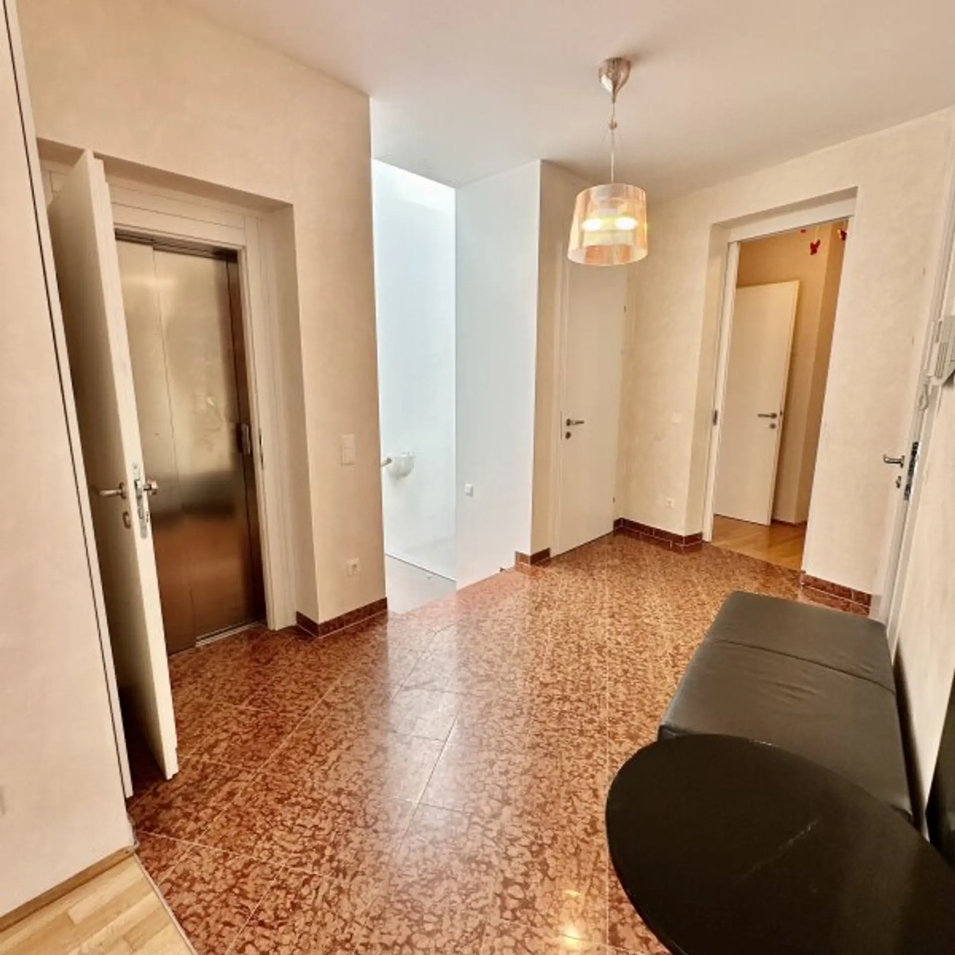 Ein echtes Alleinstellungsmerkmal: Neben dem klassischen Zugang über den Haupteingang mit Lift und Wendeltreppe verfügt die Wohnung über einen separaten, barrierefreien Aufzug, der direkt in die Wohnung führt – maximaler Komfort und Privatsphäre garantiert.