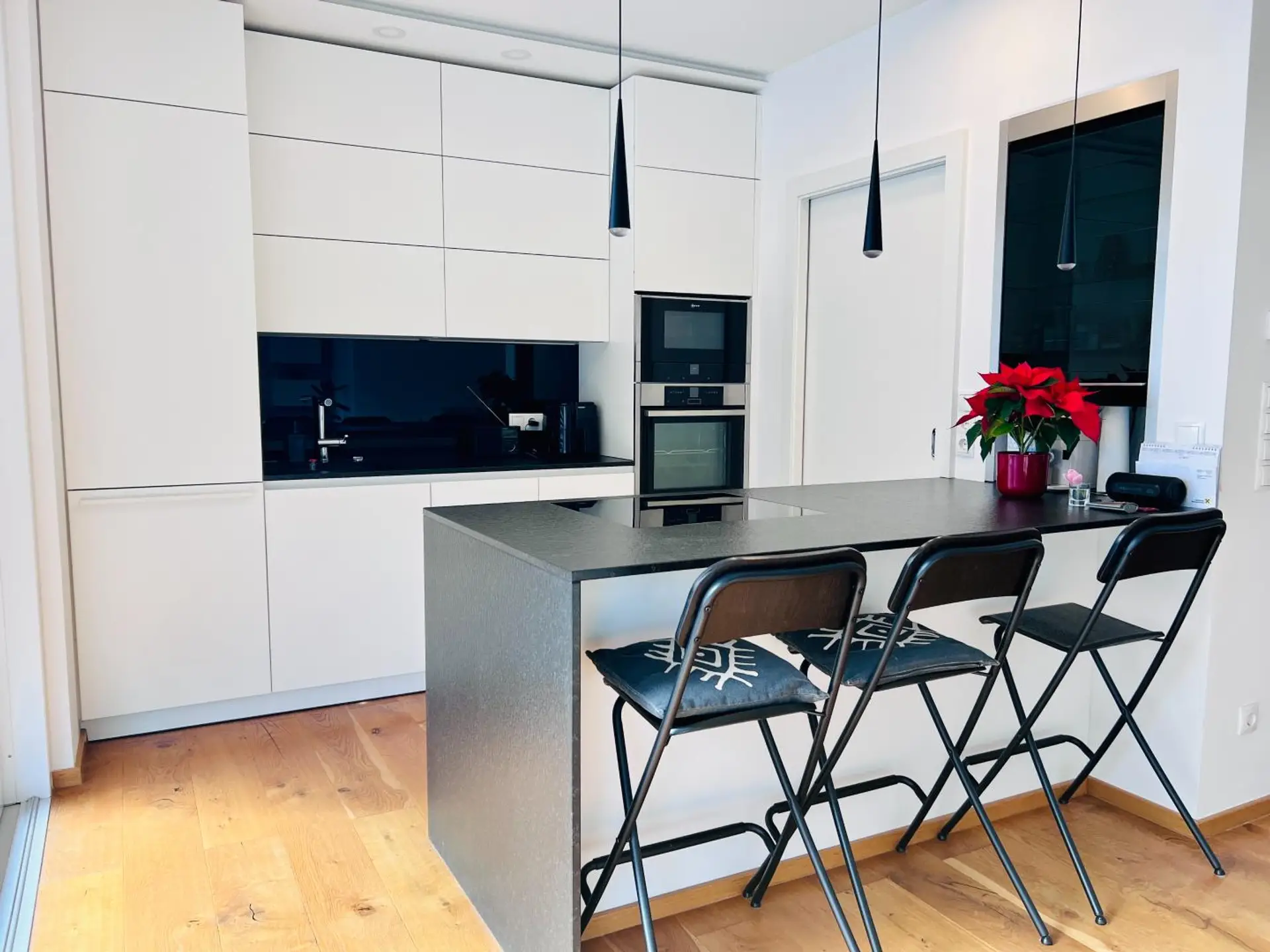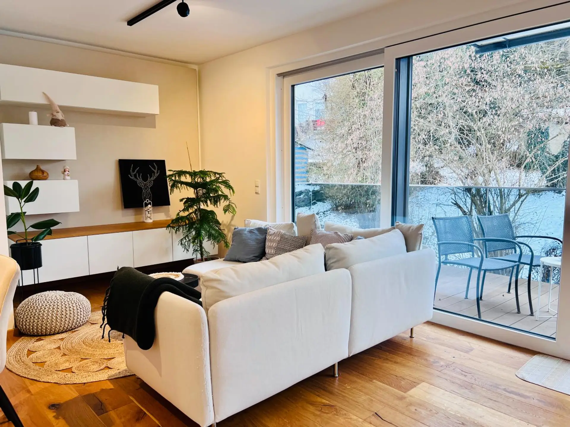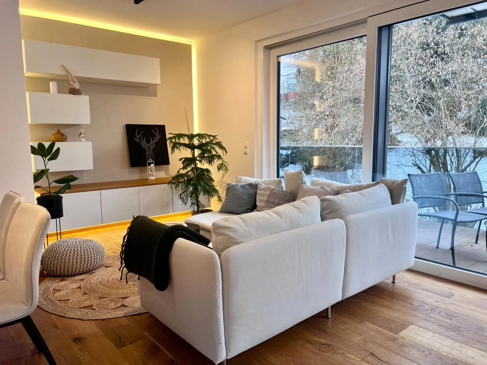 Die Wohnung überzeugt durch einen großzügigen, offenen Wohn-/Essbereich mit Loft-Charakter, bodentiefem Hebeschiebeelement und Zugang zur ca. 17 m² großen, südseitigen Balkon mit traumhaftem Blick ins Grüne und auf den Wald.