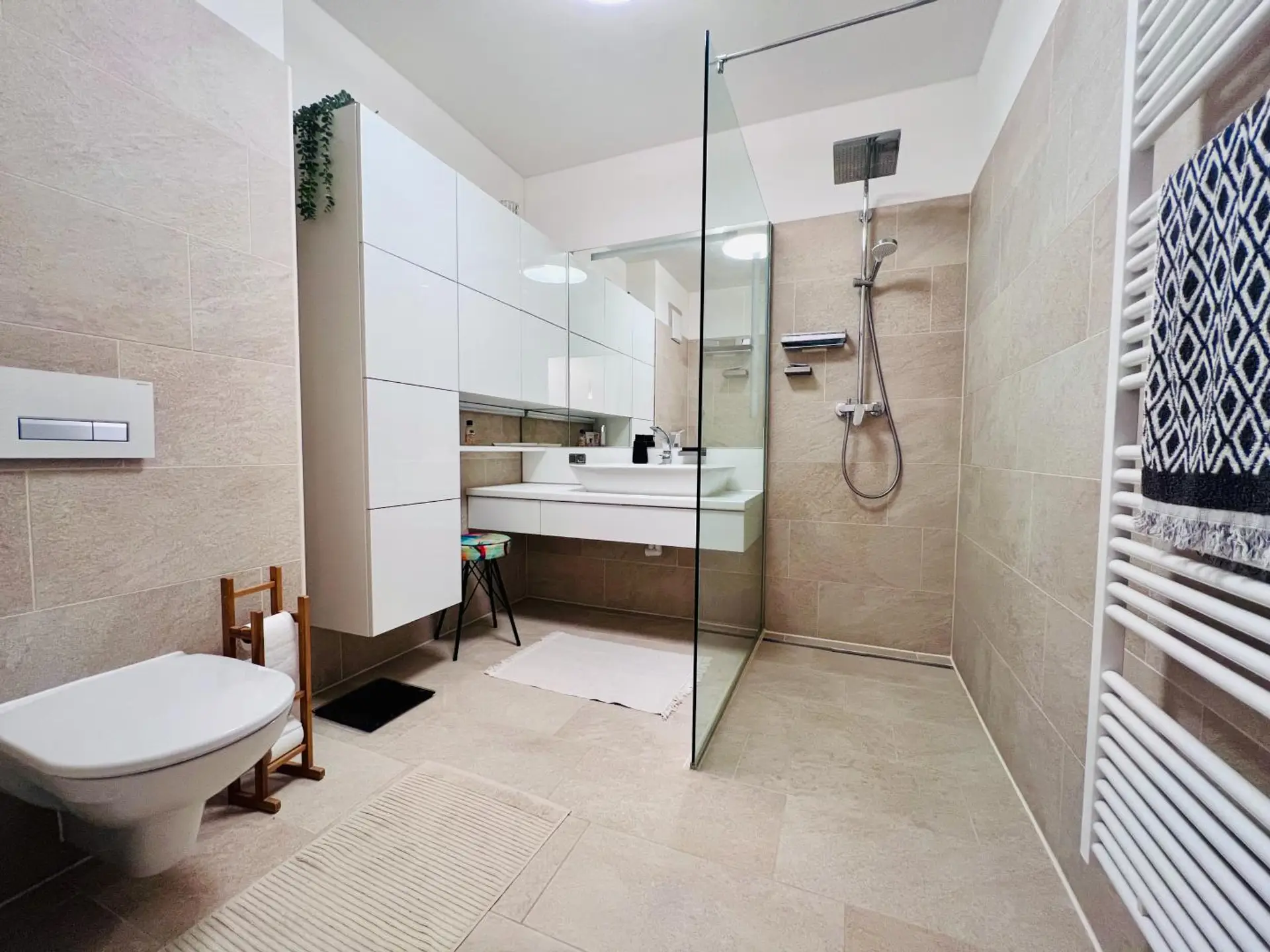 • Hochwertiges Bad mit Regendusche, Maßmöbeln & XL-Handtuchtrockner