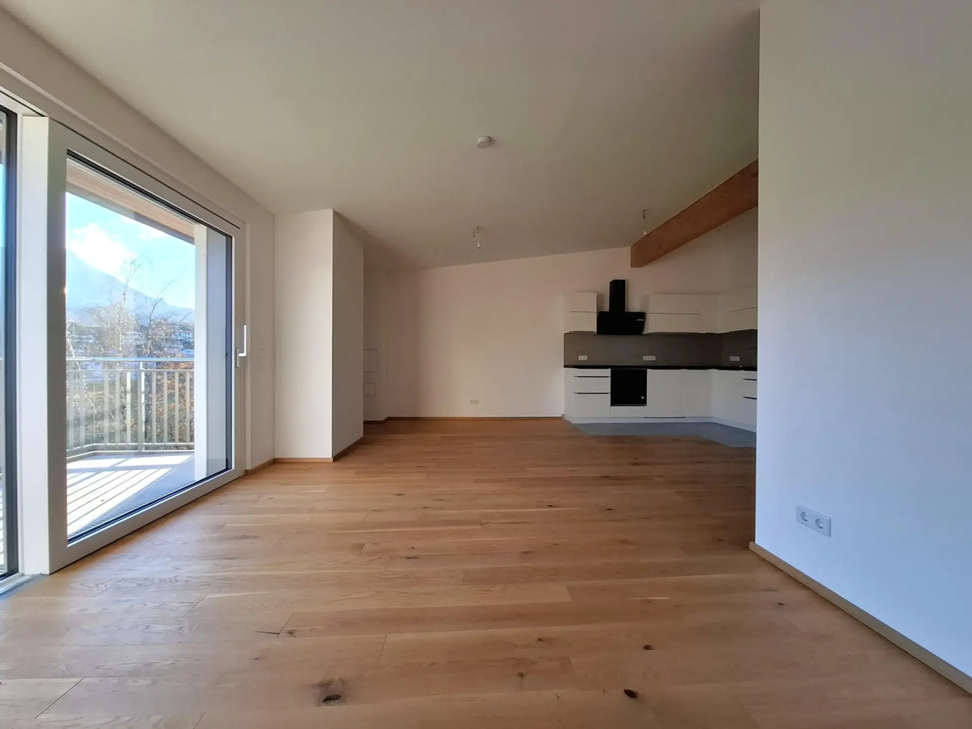 Diese ca. 114m² große Neubauwohnung überzeugt durch ihre sonnige Südausrichtung. Ein XXL Sonnenbalkon mit ca. 16m² lädt zum Verweilen ein und eröffnet einen traumhaften Blick auf die umliegende Bergwelt – ein echtes Highlight dieser Immobilie. Herzstück der Wohnung ist das helle Wohnzimmer mit Hebe-Schiebeelement, das Innen und Außen harmonisch miteinander verbindet. Die moderne Einbauküche ist mit sämtlichen E-Geräten ausgestattet – perfekt für kulinarische Genussmomente. Für zusätzlichen Komfort sorgt die Beschattung mit Raffstoren. Ergänzt wird die exklusive Ausstattung durch einen hochwertigen Parkettboden, Fußbodenheizung über umweltfreundliche Fernwärme und ein durchdachtes Stauraumkonzept mit eigenem Kellerabteil (inkl. Licht und Strom). In der Waschküche kann können eigene Geräte angeschlossen (eigene Strom- und Wasserzähler pro Wohnung). Zur Wohnung gehört ein teilüberdachter Freistellplatz. Ein Tiefgaragenabstellplatz mit Leerverohrung für eine Wallbox kann für zusätzlich € 96.- angemietet werden. Ein eigener Abstellplatz für E-Bikes mit Lademöglichkeit über den eigenen Keller ist ebenso vorhanden. Die gemeinschaftliche Waschküche bietet die Möglichkeit zum Anschluss eigener Geräte mit separatem Strom- und Wasserzähler.