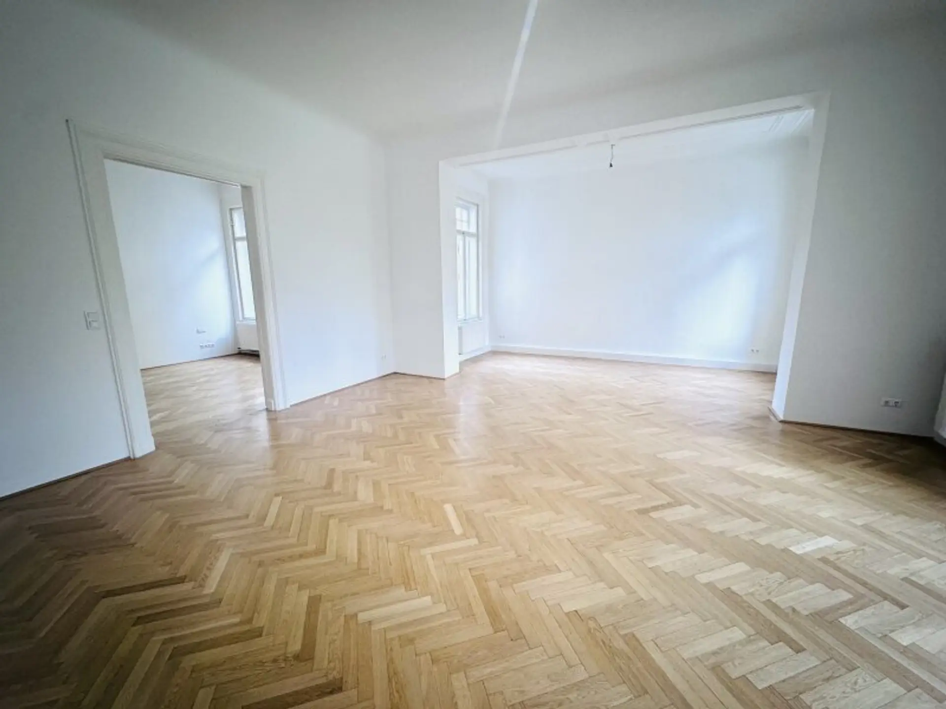 * Charmanter Fischgrätparkett in den Wohnräumen