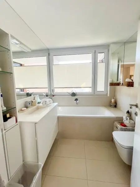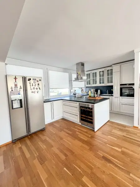 Besonders hervorzuheben ist die wunderschöne sehr helle Wohnküche die das Zentrum der Wohnung bildet. Die Küche ist mit Top Geräten ausgestattet und bietet neben einem Backrohr mit Mikrowellenfunktion auch einen Weinkühlschrank. Der Schlaf/Arbeitsbereich ist vom Wohnbereich abgetrennt. In Summe 3 Schlaf-Arbeitszimmer sind über einen Gang separat begehbar. Das Badezimmer mit Fenster ist mit einer Walkin Dusche, einem WC, einer Badewanne und hochwertigen Fliesen sowie Spiegeln ausgestattet. Eine Klimaanlage wurde im Wohnzimmer errichtet.