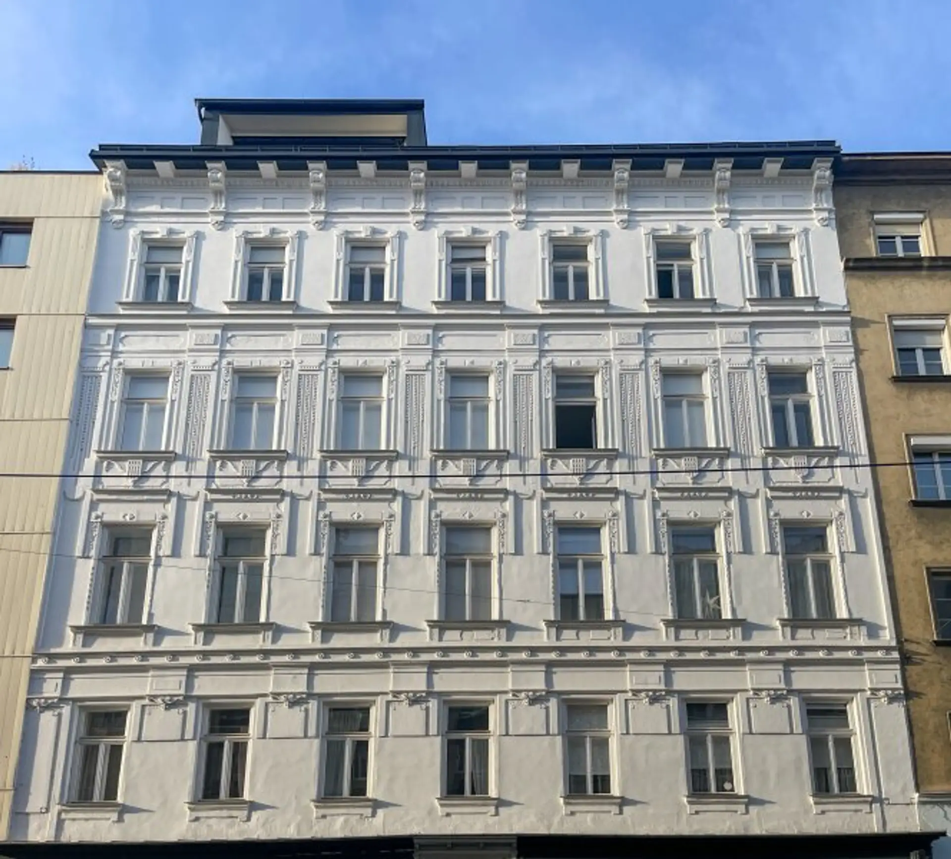 In einem prachtvollen, vollständig generalsanierten Gründerzeithaus präsentiert sich diese außergewöhnliche, ca. 65 m² große komplett hofseitige 2-Zimmer-Eigentumswohnung mit ca. 7 m² Balkon – ein seltenes Zusammenspiel aus zeitlosem Altbaucharme und exklusivster moderner Ausstattung. Das Haus wurde erst 2020 umfassend erneuert: Fassade, Stiegenhaus und Eingangsbereich erstrahlen im hochwertigen Altbaustil, während Dachgeschoßausbau und Lift zeitgleich neu errichtet wurden.