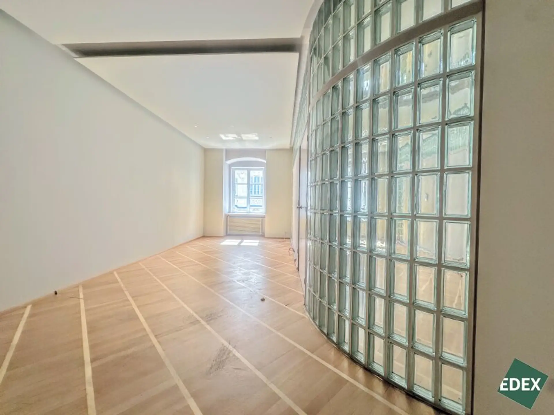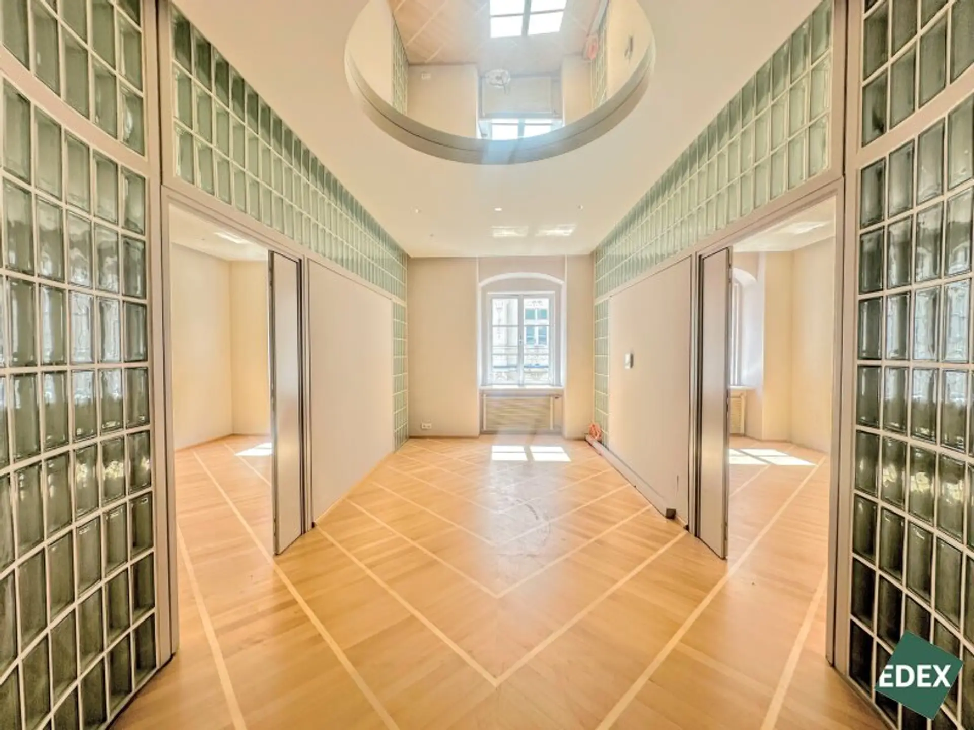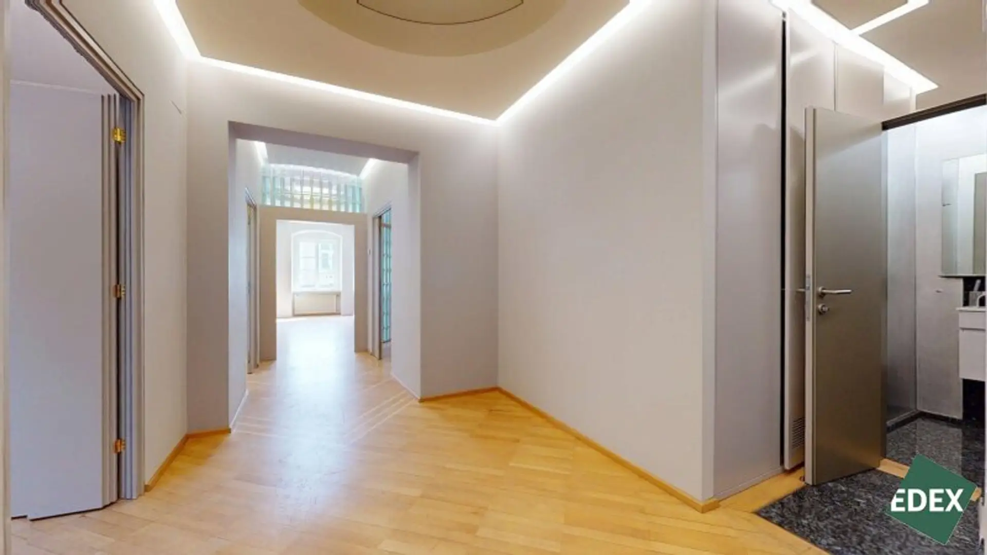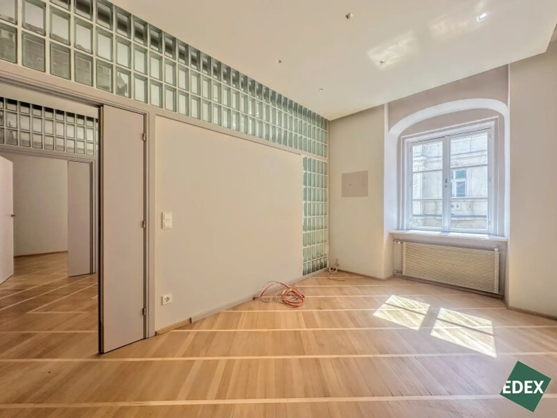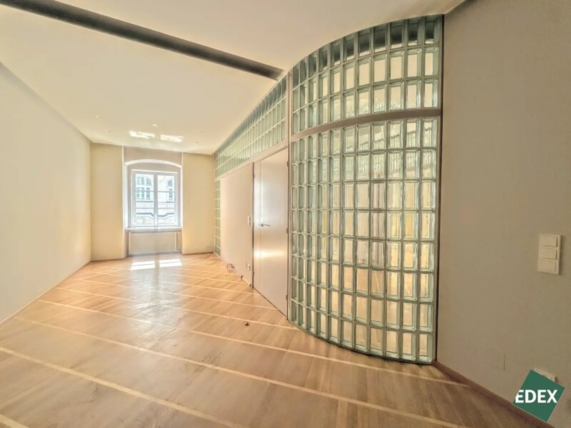 Aufgrund der effizienten Anordnung und dem hochwertigen Ausbau ist ein repräsentativer Unternehmensauftritt garantiert. Die Glaselemente, eine elegante, indirekte Beleuchtung und ein hochwertiger Parkettboden runden das Bild einer einzigartigen Bürofläche in einem klassischen Wiener Stadthaus ab.