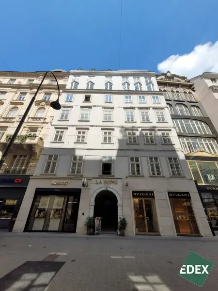 Die Bürofläche mit rd. 113 m² befindet sich in einem sehr schönen, repräsentativen Altbau direkt am Kohlmarkt, einer der exklusivsten Geschäftsadressen in Wien. Die Geschichte des Hauses geht bis ins 16. Jahrhundert zurück. Die Fassade stammt aus dem 18. Jahrhundert.
