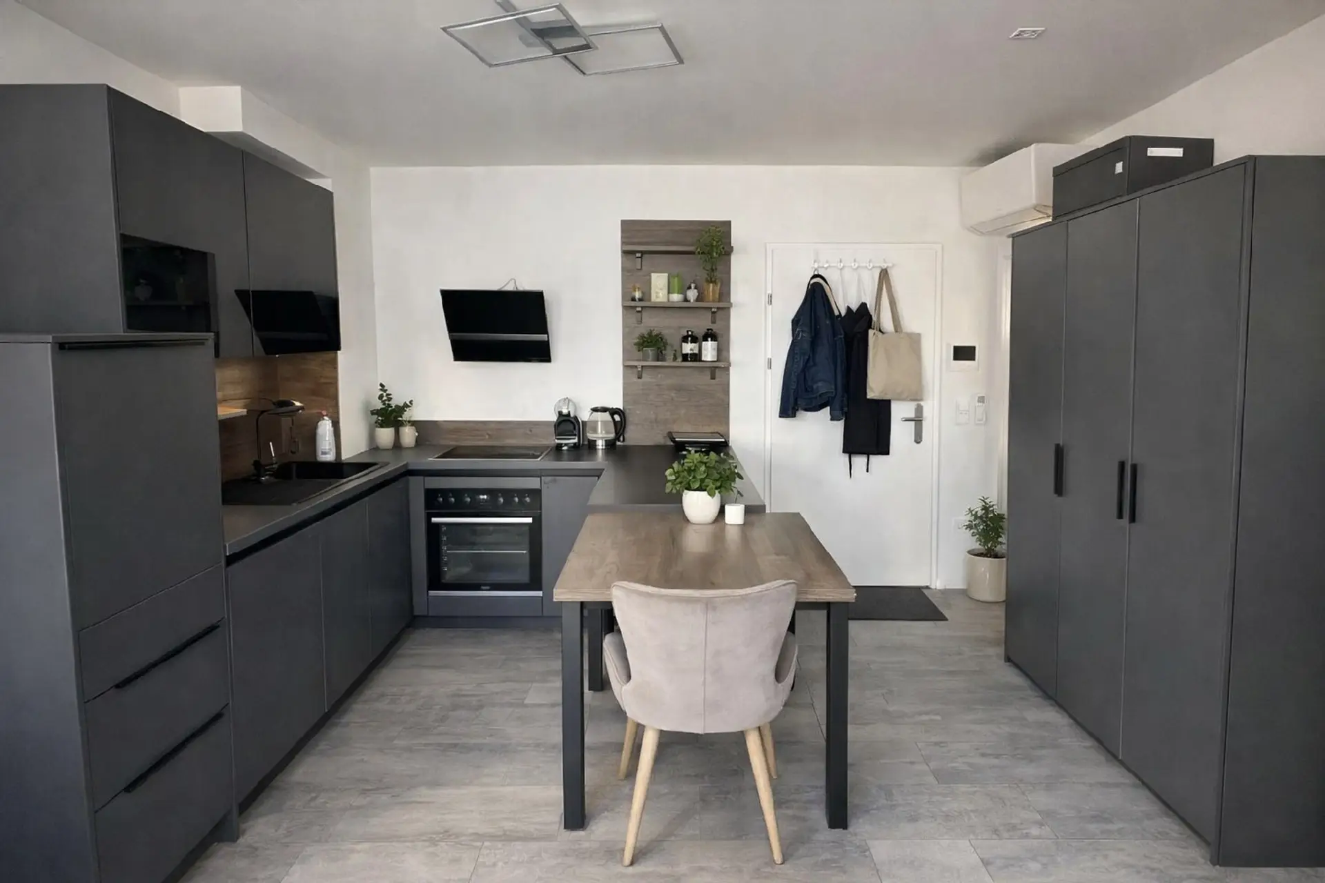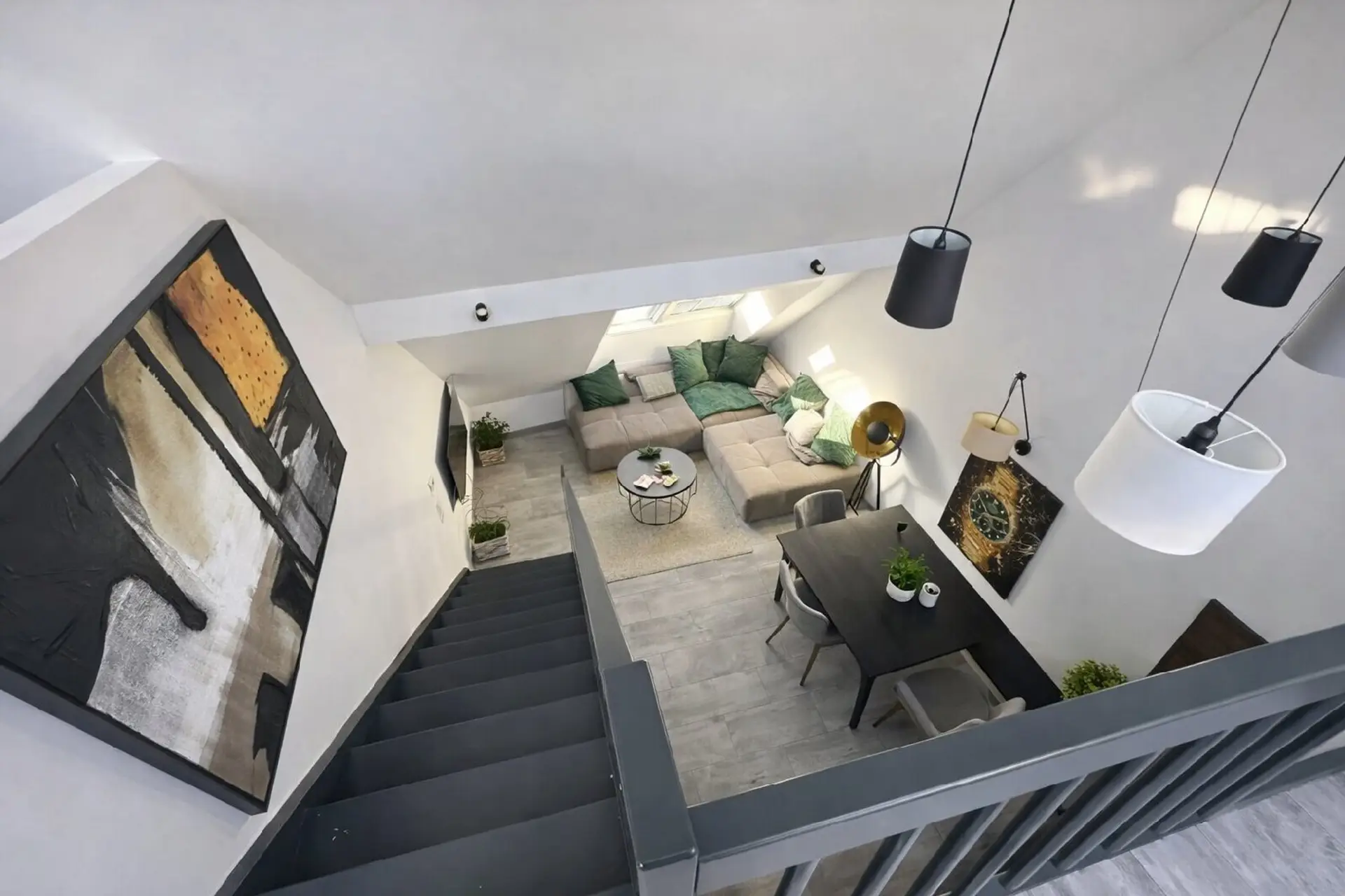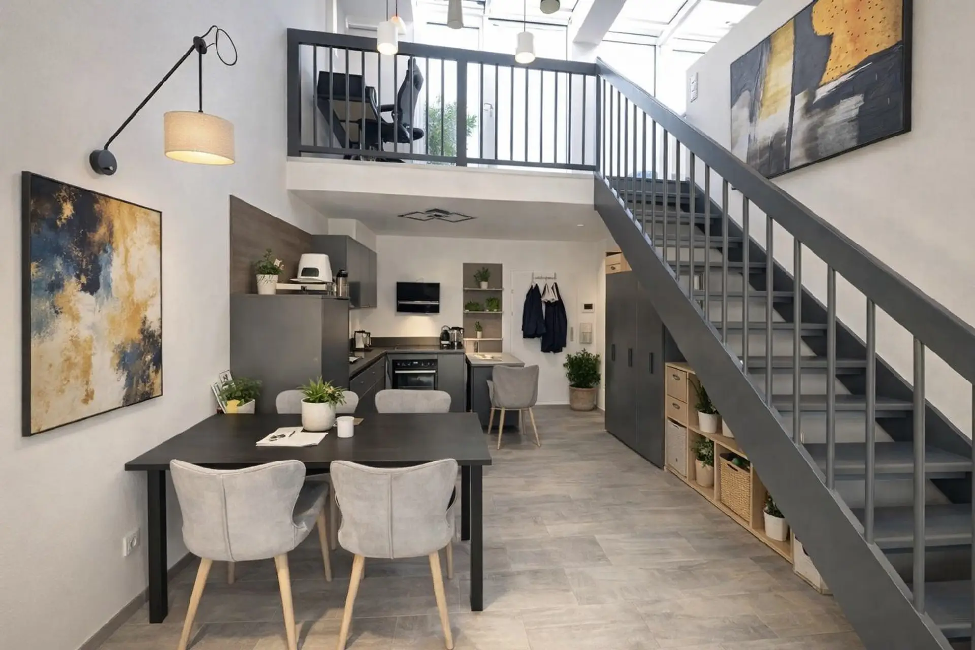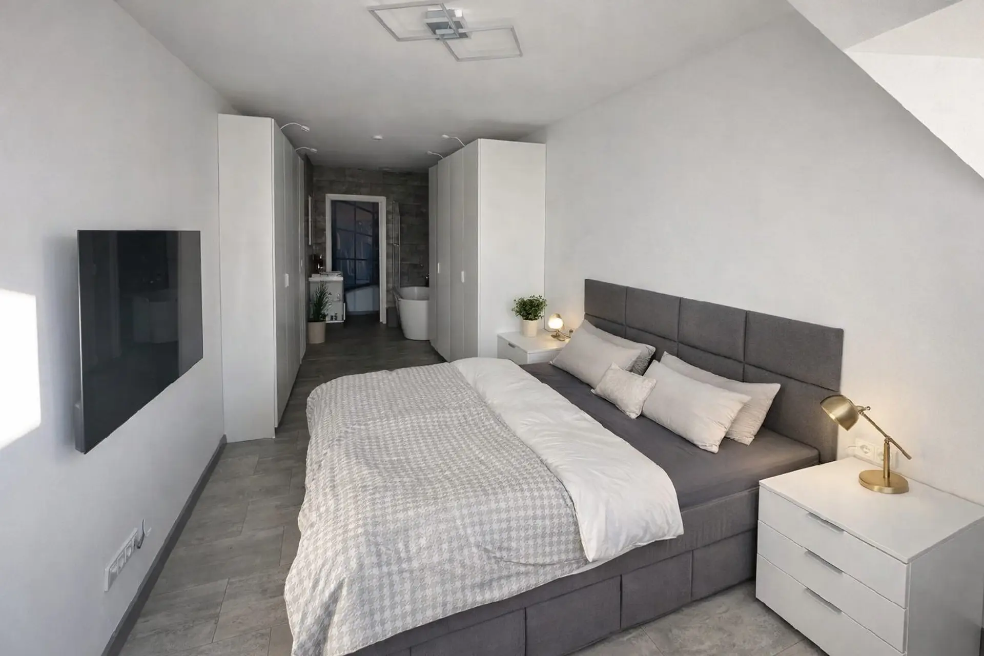 Diese moderne Neubauwohnung im Dachgeschoss eines gepflegten, dreistöckigen Wohnhauses überzeugt durch ihre offene Architektur, hochwertige Ausstattung und ein außergewöhnliches Raumgefühl. Auf rund 69,50 m² Wohnfläche – inklusive einer ca. 15,37 m² großen Galerie – entfaltet sich ein durchdachtes Wohnkonzept, das sowohl funktional als auch ästhetisch höchsten Ansprüchen gerecht wird. Bereits beim Betreten der Wohnung fällt die klare, offene Gestaltung ins Auge. Der Wohnbereich im Erdgeschoss verbindet Küche, Essen und Wohnen zu einer harmonischen Einheit. Die stilvolle Küche fügt sich nahtlos in den Raum ein und bietet ausreichend Stauraum sowie moderne Geräte für den Alltag. Der angrenzende Essbereich und die gemütliche Wohnzone schaffen eine angenehme Atmosphäre, die durch ein stimmiges Lichtkonzept zusätzlich unterstrichen wird. Der Schlafbereich ist bewusst offen und erinnert in seiner Gestaltung an ein modernes Hotelzimmer. Großzügige Schranklösungen sorgen für Ordnung und Komfort, während die freistehende Badewanne und das Waschbecken elegant in den Raum integriert sind. Das separate WC ist mit einem hochwertigen Dusch-WC von Grohe ausgestattet und rundet das durchdachte Raumkonzept ab. Über eine Treppe gelangt man in die Galerie im Obergeschoss, die mit ihren Dachschrägen einen besonders charmanten Rückzugsort darstellt. Ob als Homeoffice, Leseecke oder zusätzlicher Wohnbereich – dieser Raum bietet vielfältige Nutzungsmöglichkeiten und verleiht der Wohnung eine besondere architektonische Qualität. Von hier aus gelangt man direkt auf das absolute Highlight der Immobilie: die rund 47 m² große Dachterrasse. Die Terrasse bietet ein außergewöhnliches Maß an Privatsphäre, da kein direktes Gegenüber vorhanden ist. Stattdessen eröffnet sich ein freier Blick ins Grüne auf gewachsene Bäume – eine seltene Kombination aus urbanem Wohnen und naturnahem Rückzugsort. Ob entspannte Stunden in der Sonne oder gesellige Abende – dieser Außenbereich erweitert den Wohnraum auf ideale Weise. Auch technisch ist die Wohnung auf einem zeitgemäßen Niveau ausgestattet. Eine Luft/Wasser-Wärmepumpe sorgt für effiziente Energieversorgung, während drei Klimageräte in allen Wohnbereichen auch an heißen Tagen für angenehme Temperaturen garantieren. Ein Kellerabteil bietet zusätzlichen Stauraum. Zu beachten ist, dass die ursprüngliche Raumanordnung im Bereich Schlafzimmer sowie Bad/WC angepasst wurde – die aktuelle Ausführung entspricht der beigefügten Skizze. Zusätzlich ist ein Garagenstellplatz um € 15.000,– zu erwerben. Lage Die Wohnung befindet sich in Süßenbrunn, einem aufstrebenden und gleichzeitig angenehm ruhigen Stadtteil im Norden Wiens. Die Lage zeichnet sich durch eine gelungene Mischung aus naturnahem Wohnen und guter Erreichbarkeit aus. Direkt vor der Haustüre befindet sich eine Bushaltestelle, wodurch eine unkomplizierte Anbindung an das öffentliche Verkehrsnetz gewährleistet ist. Die Schnellbahnstation Süßenbrunn ist in etwa 15 Gehminuten erreichbar und bietet eine rasche Verbindung in Richtung Stadtzentrum sowie ins Umland. Ein besonderer Mehrwert entsteht durch die aktuelle Umgestaltung des Platzes vor dem Gebäude, der künftig als attraktiver Grün- und Parkraum genutzt wird. Dadurch gewinnt die unmittelbare Umgebung zusätzlich an Aufenthaltsqualität und unterstreicht den ruhigen, grünen Charakter der Lage. Insgesamt bietet diese Wohngegend eine ideale Kombination aus Rückzug, Natur und gleichzeitig guter infrastruktureller Anbindung – perfekt für alle, die entspannt wohnen möchten, ohne auf die Vorzüge der Stadt verzichten zu müssen.