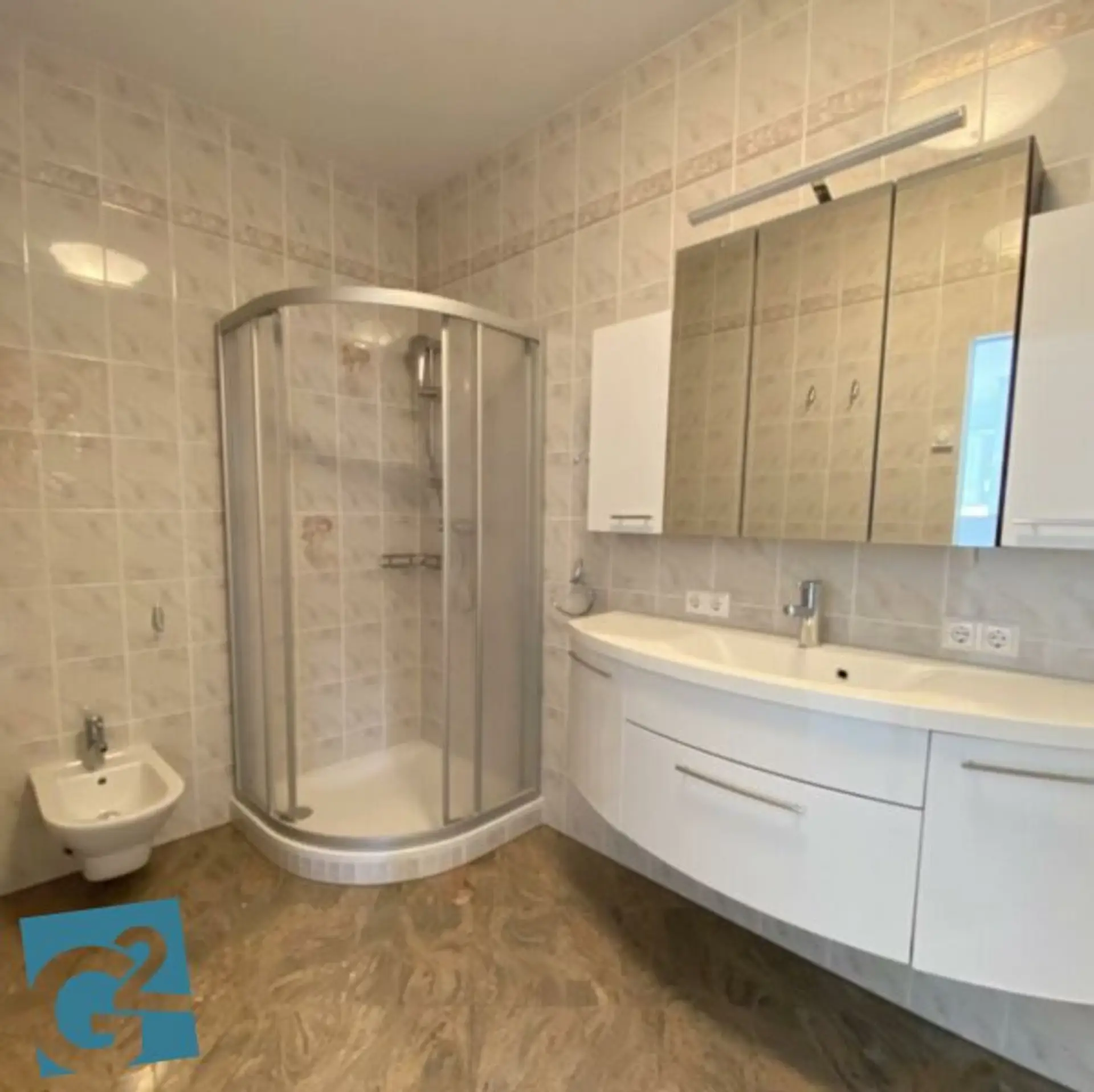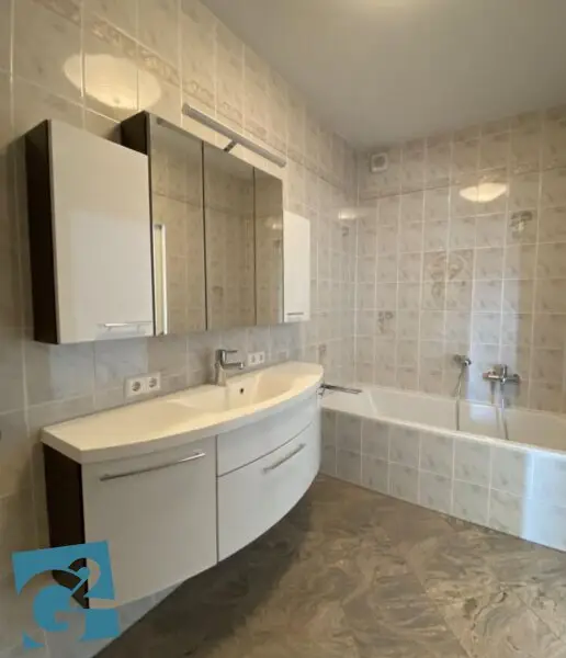 - möbliertes Bad mit Dusche, Wanne, Waschtisch, Bidet