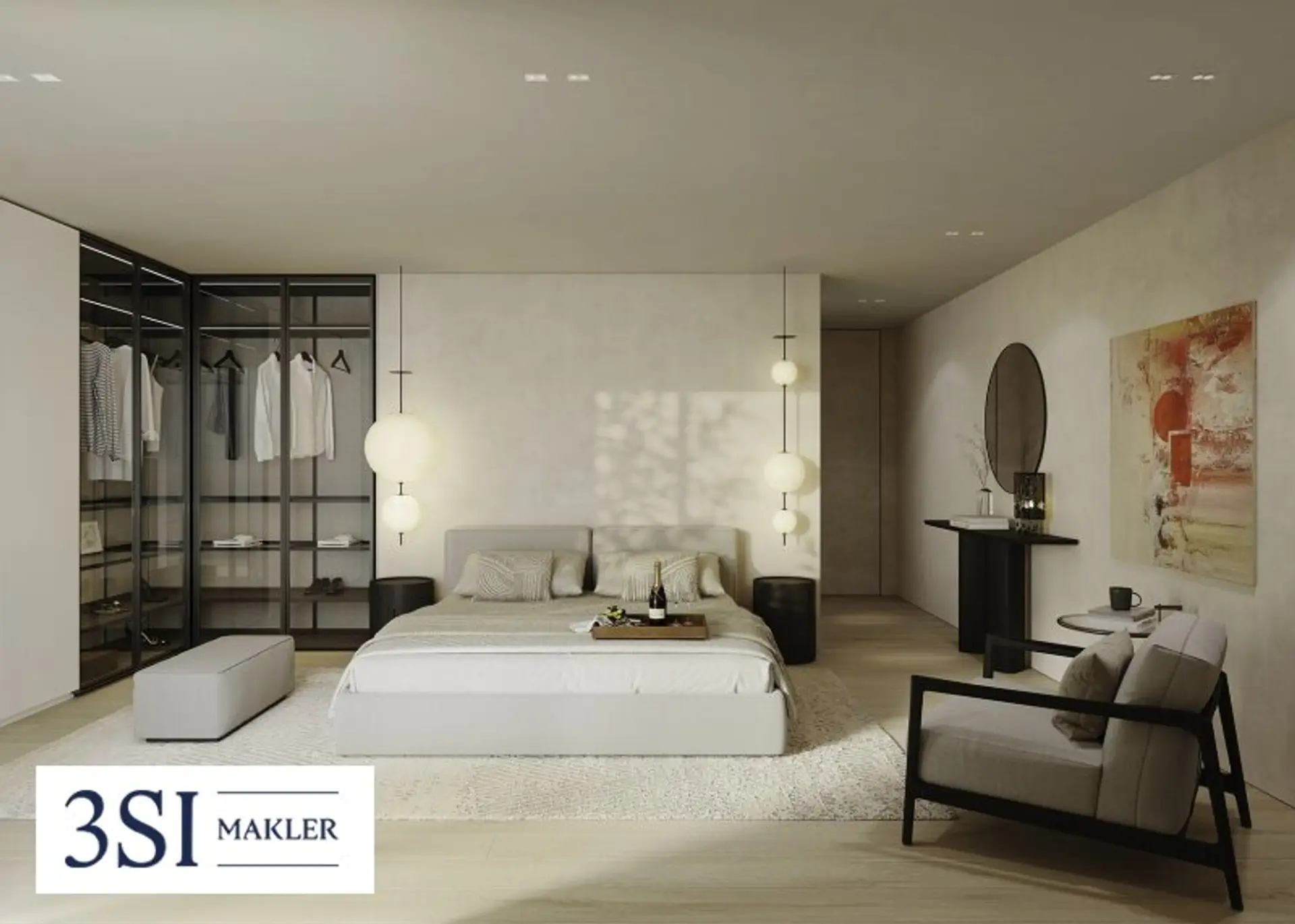 Im Zusammenspiel klarer Linien und präzise gesetzter Details entsteht die architektonische Qualität von THE SUPERIOR. Jede Entscheidung folgt einem übergeordneten Prinzip: Reduktion, Dauerhaftigkeit und Materialität. Die Innenräume überzeugen durch sorgfältig ausgewählte Oberflächen, die Ruhe ausstrahlen und zugleich Tiefe entwickeln. Eichenparkett bringt natürliche Wärme in die Räume, während großformatige Verglasungen Licht und Weitblick selbstverständlich integrieren. Auch in den Bädern setzt sich diese Klarheit fort. Hochwertiges Feinsteinzeug trifft auf fein ausgeführte Sanitärobjekte und schafft eine Atmosphäre, die zurückhaltend und zugleich anspruchsvoll wirkt. Technik versteht sich hier als diskrete Unterstützung. Split-Kühlgeräte sorgen für angenehme Temperaturen, ohne in Erscheinung zu treten. Elektrisch gesteuerte Beschattungselemente regulieren Licht und Atmosphäre im Hintergrund, während die Video-Gegensprechanlage Sicherheit und Privatsphäre gewährleistet.