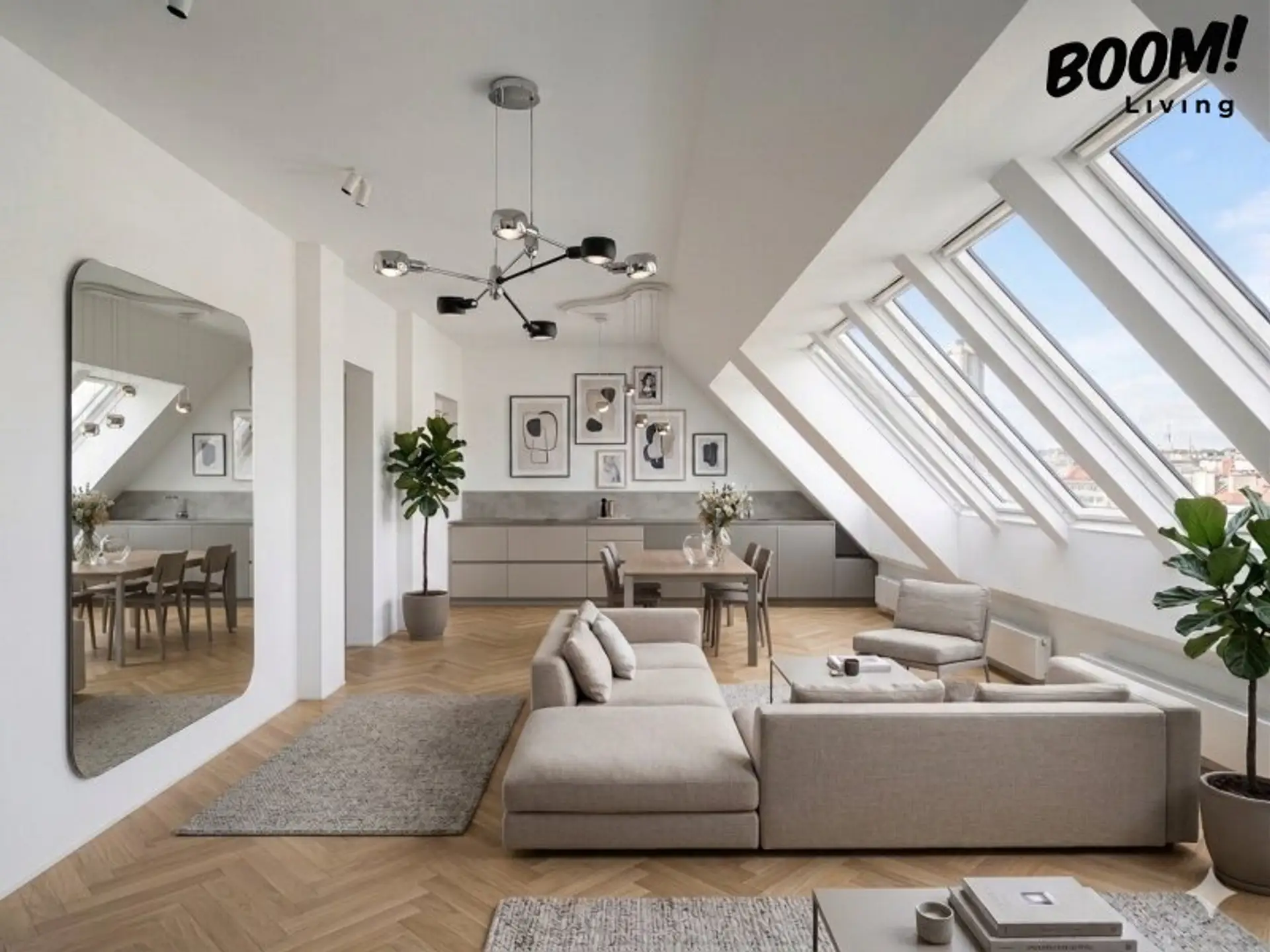 In einem liebevoll sanierten Gründerzeithaus entstehen vier hochwertige Dachgeschosswohnungen, die klassischen Wiener Charme mit moderner Architektur verbinden.