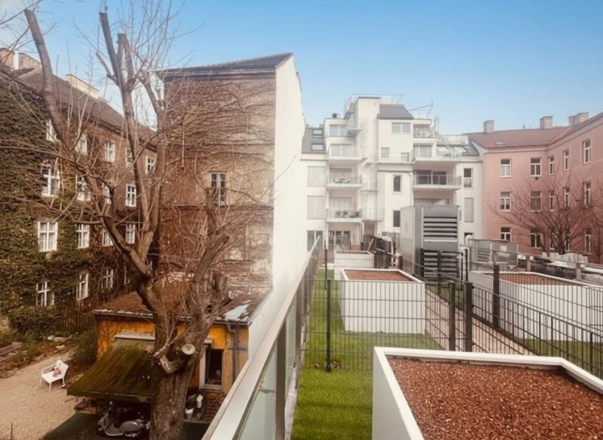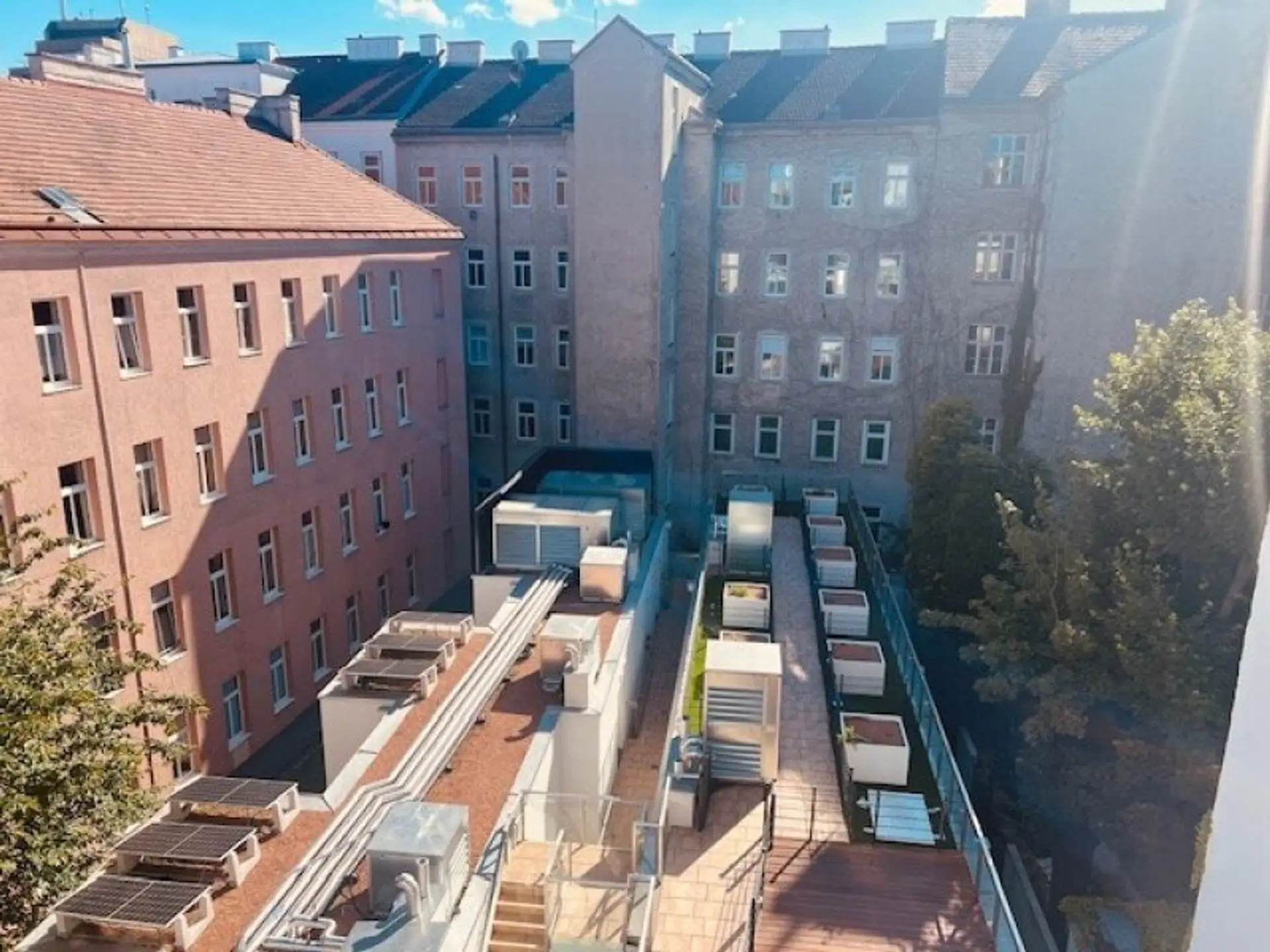 * rd. 6 m² Urban Gardening Fläche am Flachdach des Hofgebäudes