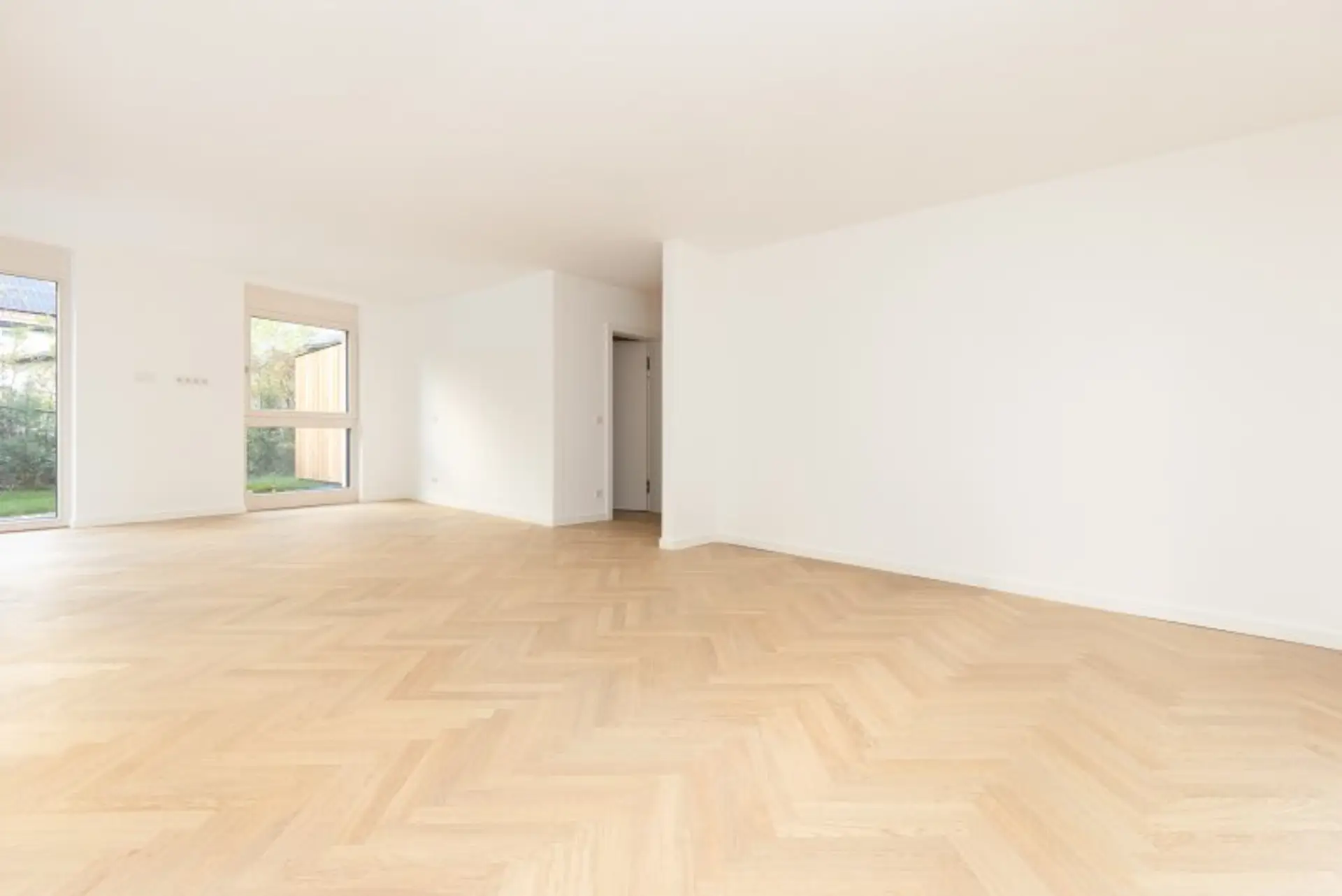 Auf der vis á vis liegenden Seite des Vorraums befindet sich der zweite der beiden Schlafräume. Mit 13,48 m² Größe etwas kompakter als das Master Bedroom bietet er sich ideal als Kinder/Jugendzimmer, oder aber Home-Office und Gästezimmer an. Der Raum verfügt über eine Terrassentüre mit direktem Zugang in den Garten mit Ost-Ausrichtung. Ein perfekter Ort, um ausgeruht und womöglich bei Vogelgezwitscher in den Tag zu starten.