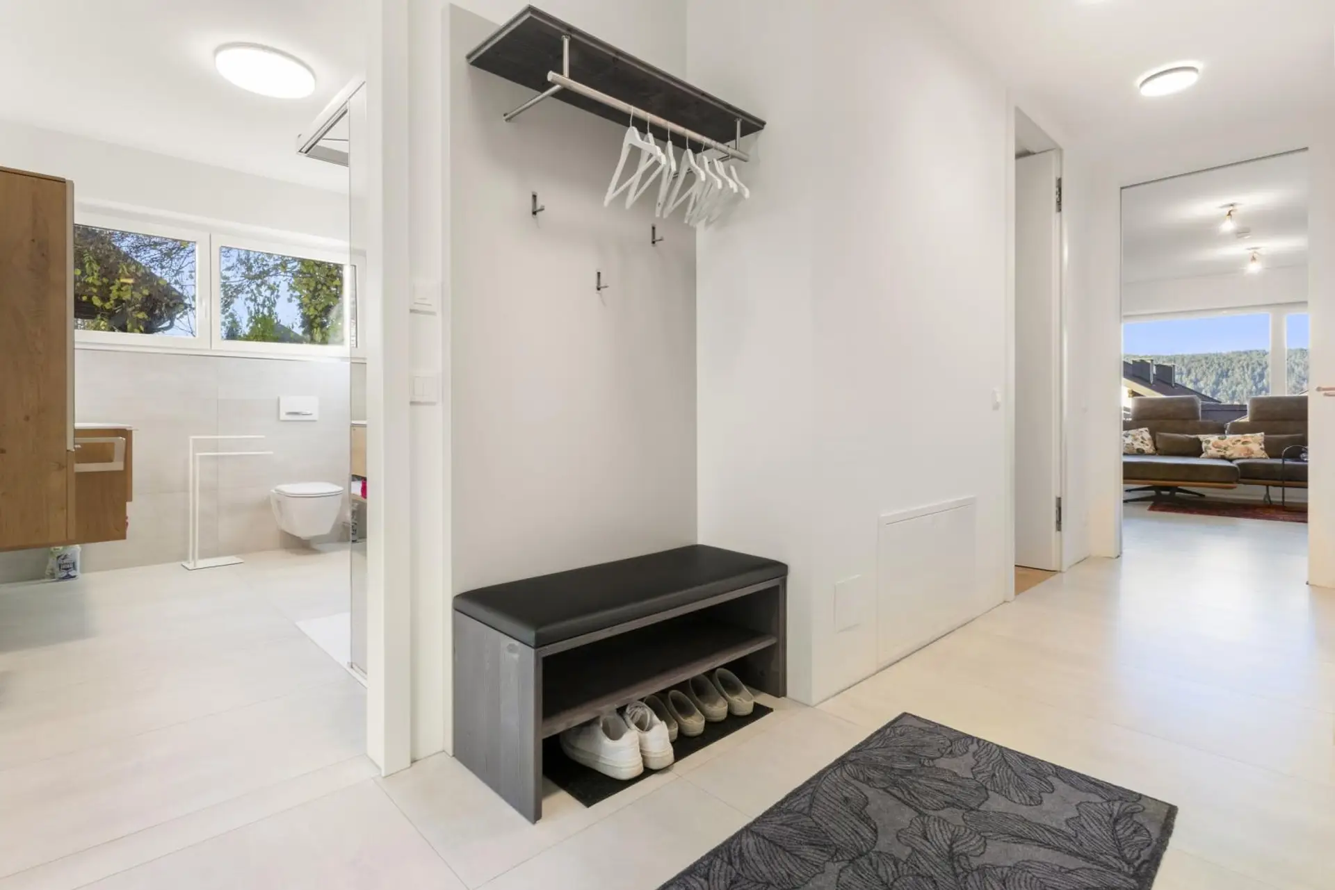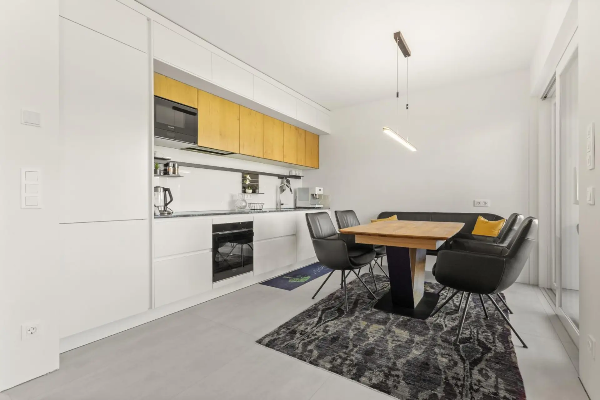 Die moderne Einbauküche ist mit hochwertigen Markengeräten ausgestattet und lässt keine Wünsche offen. Zwei (Schlaf-)Zimmer, ein elegantes Badezimmer mit bodengleicher Dusche und WC sowie ein separates Gäste-WC runden das Raumangebot harmonisch ab.
