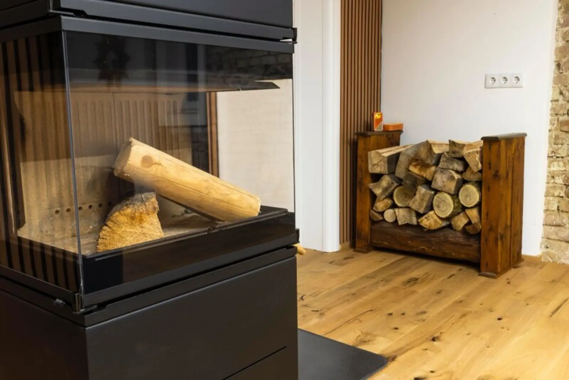 • Holz-Kaminofen (11 kW) & Elektroheizung (WLAN-steuerbar, Fa. Kesser)